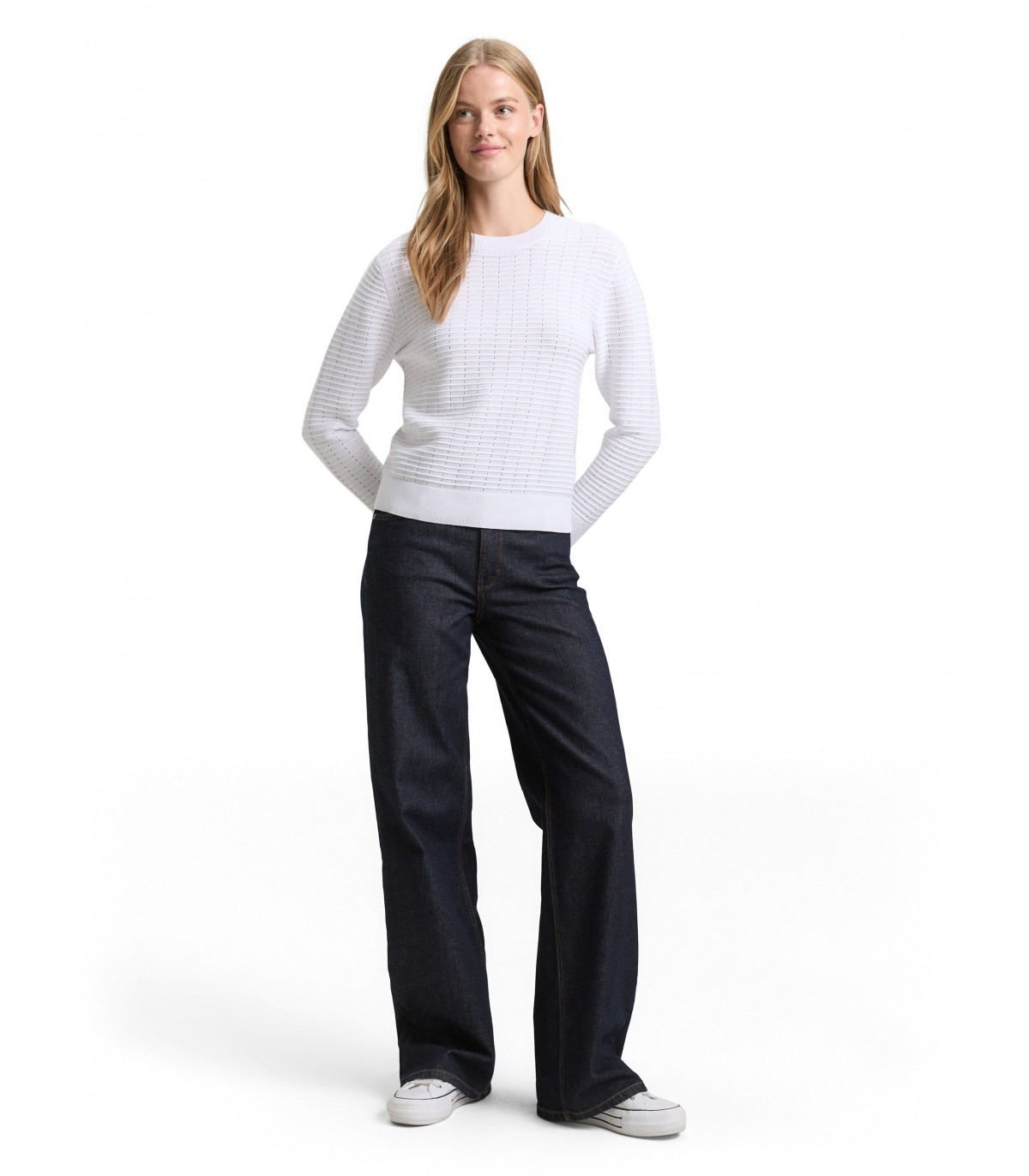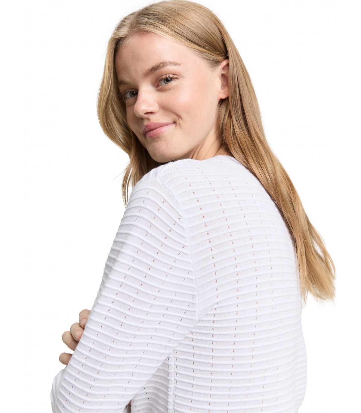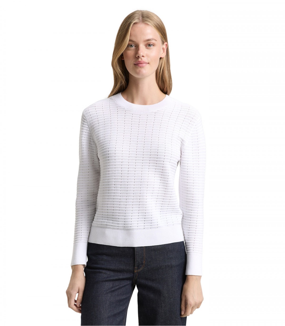Šis moteriškas „Tom Tailor“ megztinis yra maloniai tekstūruoto paviršiaus. Klasikinė apvali iškirptė ir ilgos rankovės puikiai tinka kasdieniam dėvėjimui. Tiesaus kirpimo ir derančio dryžuoto audinio derinys sukuria ramų ir subalansuotą įvaizdį.
