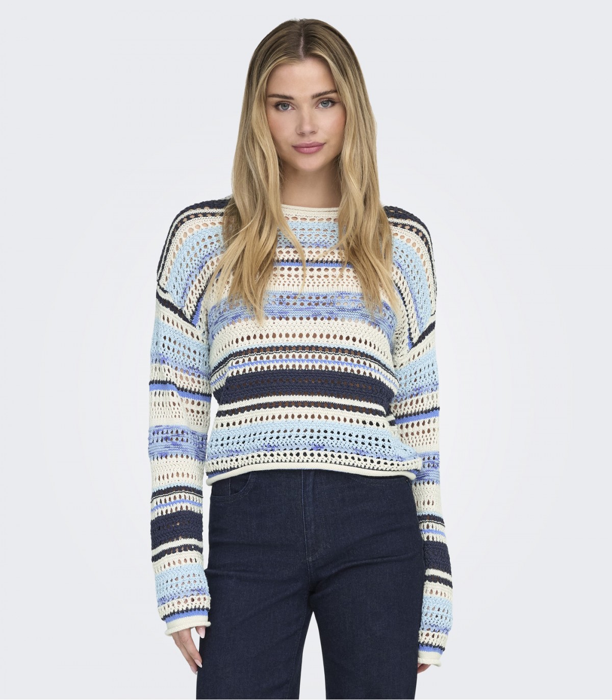 Šis moteriškas „Only“ megztinis su ryškiomis juostelėmis pasiūtas iš nerto audinio, sukuriančio drąsią tekstūrą ir subtilų, rankomis megzto audinio efektą. Laisvas siluetas su nuleistais pečiais suteikia patogumo ir modernaus, laisvo įvaizdžio.