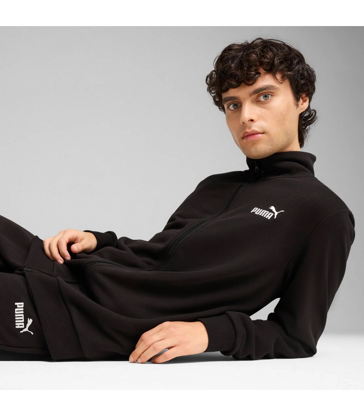 Vyriškas „Puma“ sportinis kostiumas derina sportinį stilių ir kasdienį patogumą. Striukė turi aukštą apykaklę ir briaunuotus rankogalius, kelnės turi tamprų juosmenį su vidinėmis raištelėmis. Abu modeliai papuošti aiškiu logotipu.