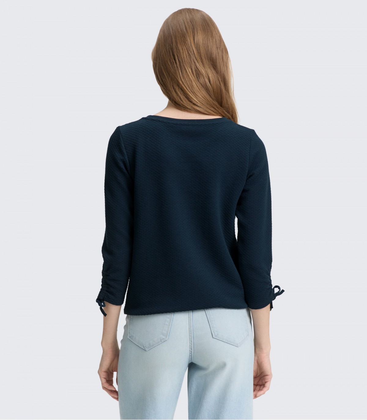 Moteriškas tekstūruotas džemperis „Tom Tailor“ – stilingas ir patogus pasirinkimas kiekvienai dienai. Pagamintas iš aukštos kokybės medžiagos, šis džemperis yra minkštas ir patogus, užtikrinantis maksimalų komfortą visą dieną. Džemperis turi madingas 3/4 rankoves su raišteliu krašte, kuris leidžia sutraukti ir surišti rankoves, sukuriant ryškų ir moterišką įvaizdį.