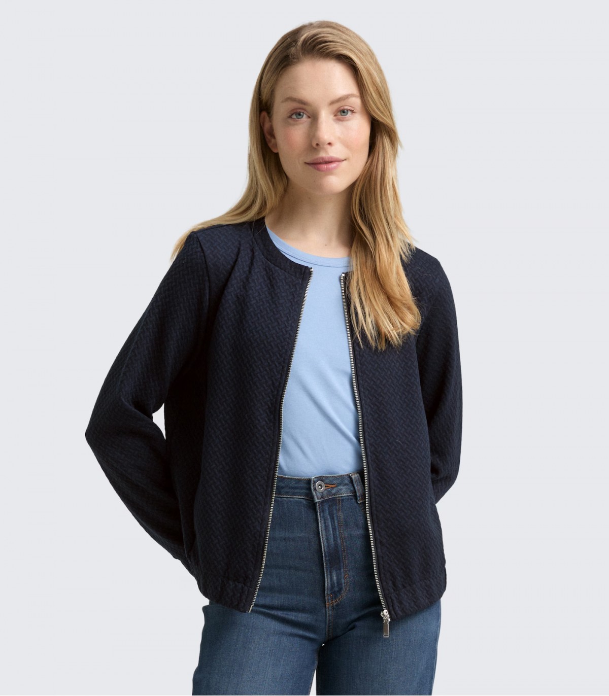 Universalus ir patogus švarkas kasdieniam dėvėjimui. Struktūruotas audinys ir metalinis užtrauktukas suteikia jam išbaigtą išvaizdą.