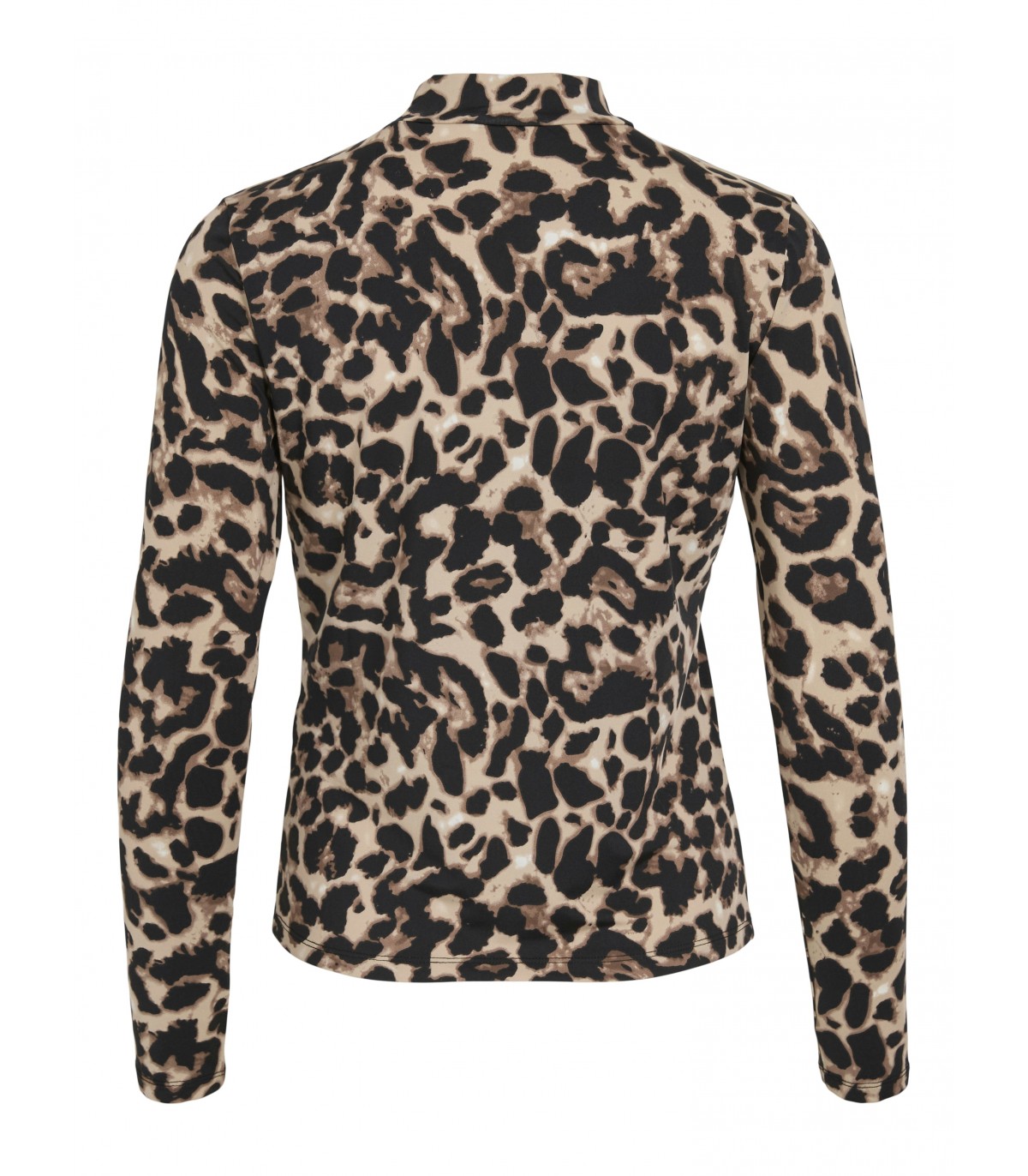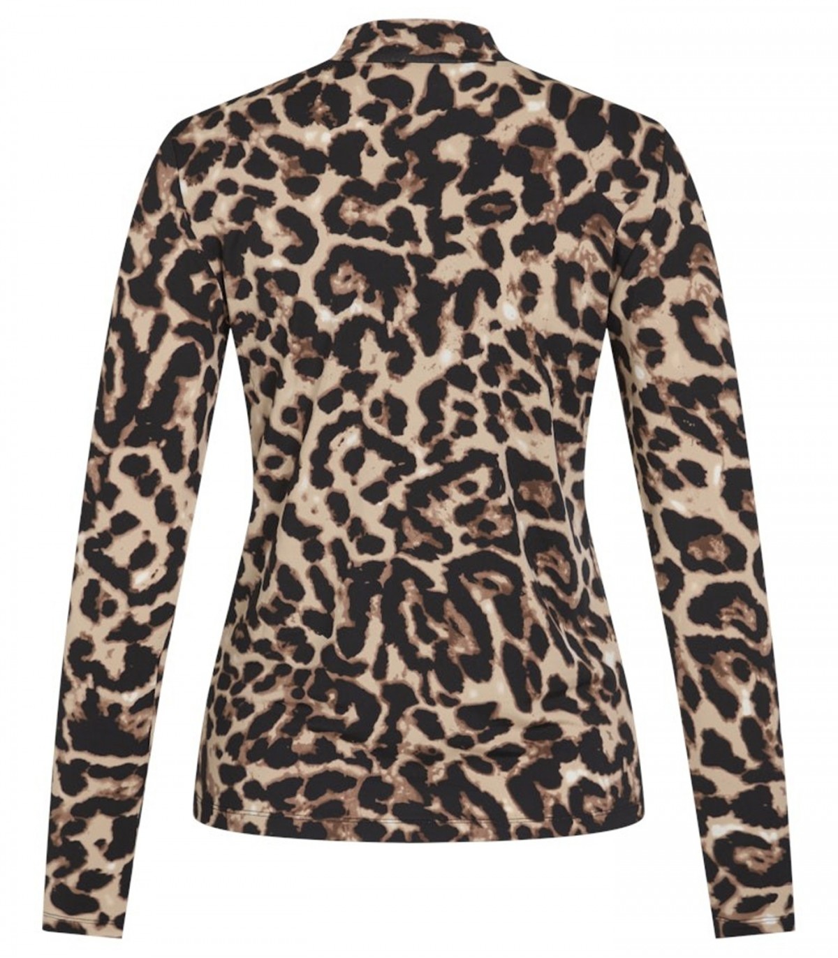 Ši aukštu kaklu, ilgomis rankovėmis palaidinė pasiūta iš lengvos, tamprios medžiagos ir yra patogi kasdieniam dėvėjimui. Gyvūnų raštas sukuria žavų įvaizdį ir dera tiek su kelnėmis, tiek su sijonais.