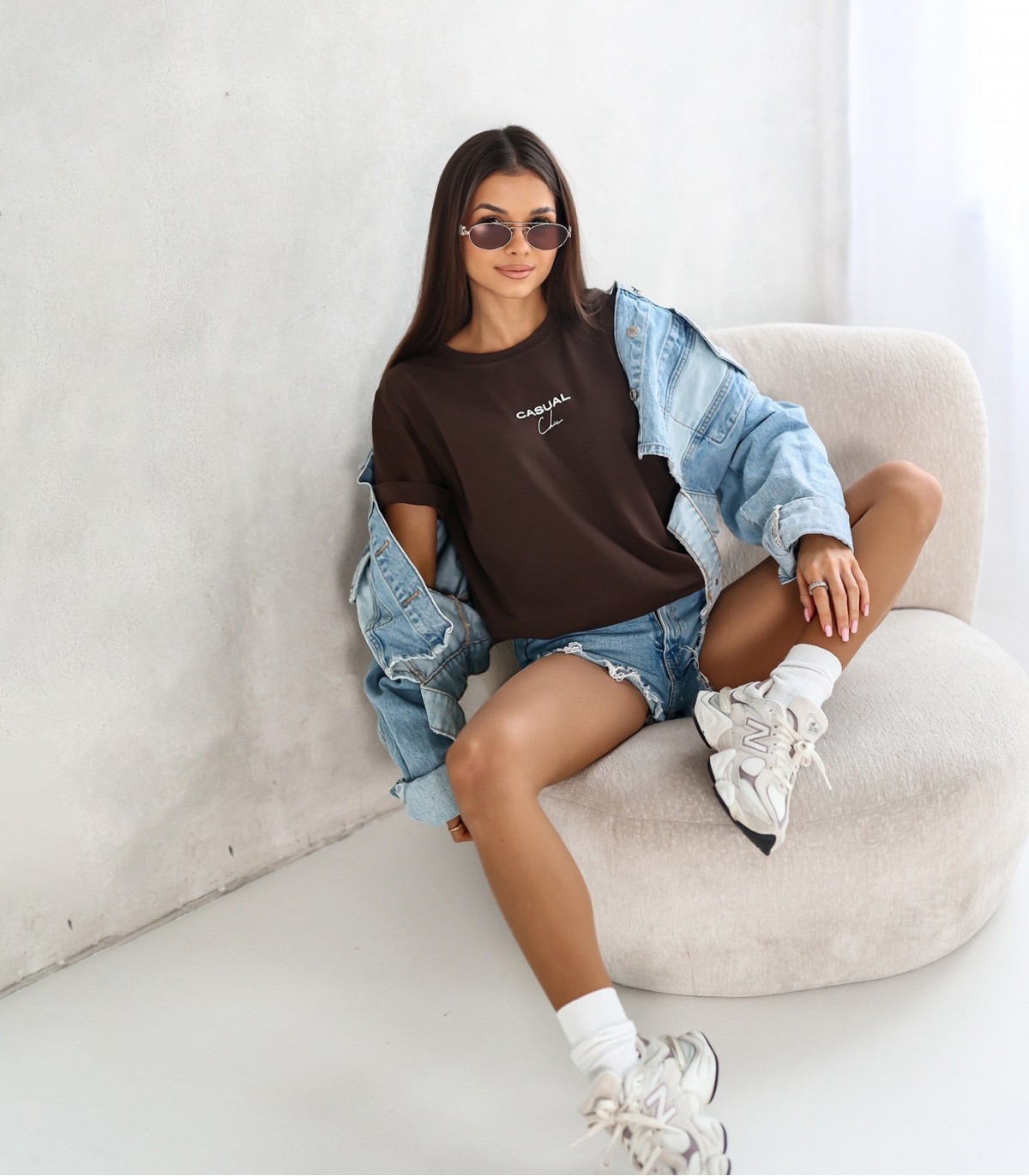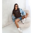 Šie moteriški marškinėliai turi apvalią iškirptę ir trumpas, rankogaliais su rankogaliais. Tiesaus kirpimo, patogūs kasdieniam dėvėjimui ir puikiai dera su džinsiniu sijonu ar kitais laisvalaikio drabužiais.