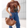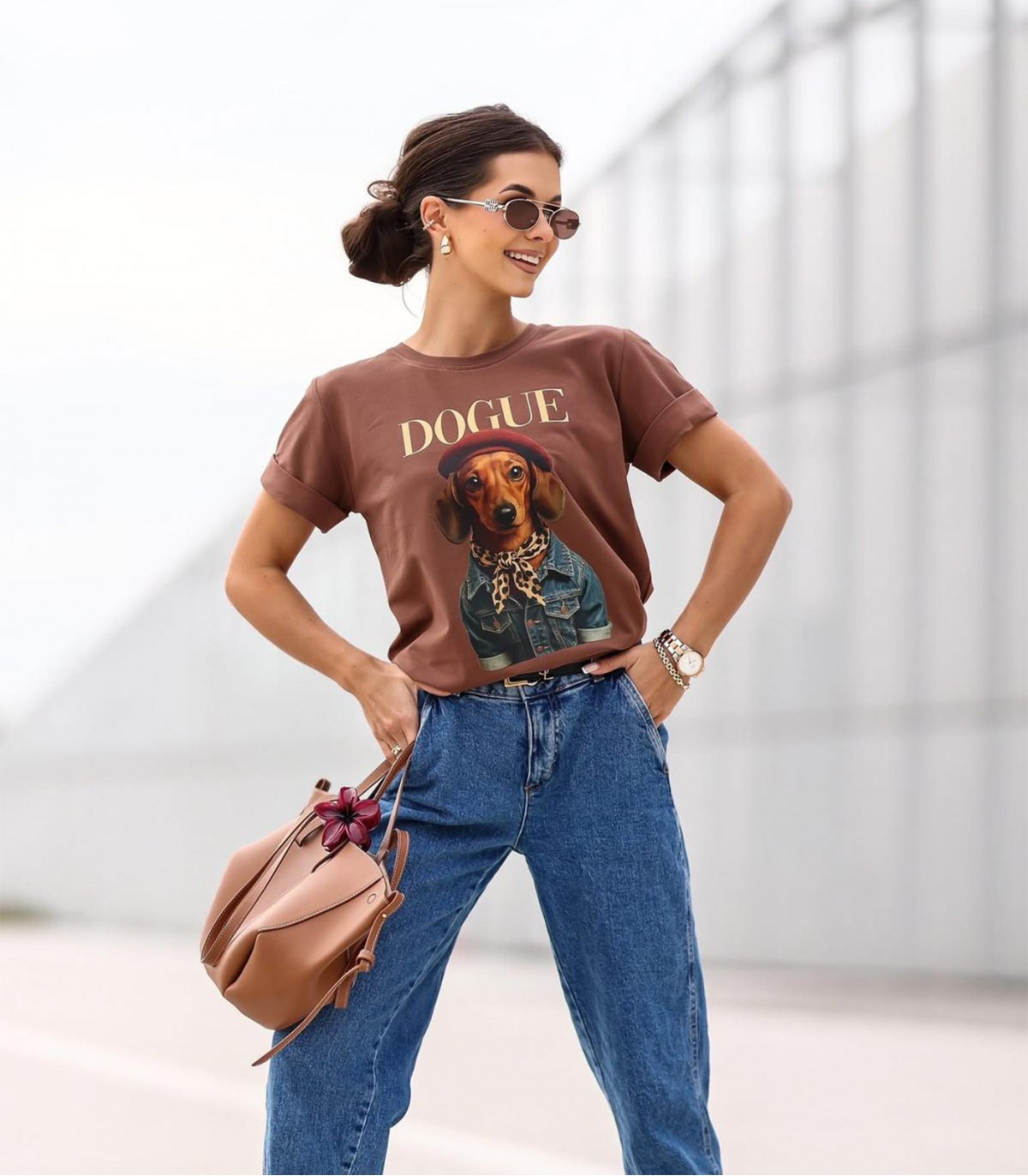 Šie moteriški marškinėliai turi apvalią iškirptę ir trumpas, rankogaliais su rankogaliais. Tiesaus kirpimo, patogūs kasdieniam dėvėjimui ir puikiai dera su džinsiniu sijonu ar kitais laisvalaikio drabužiais.