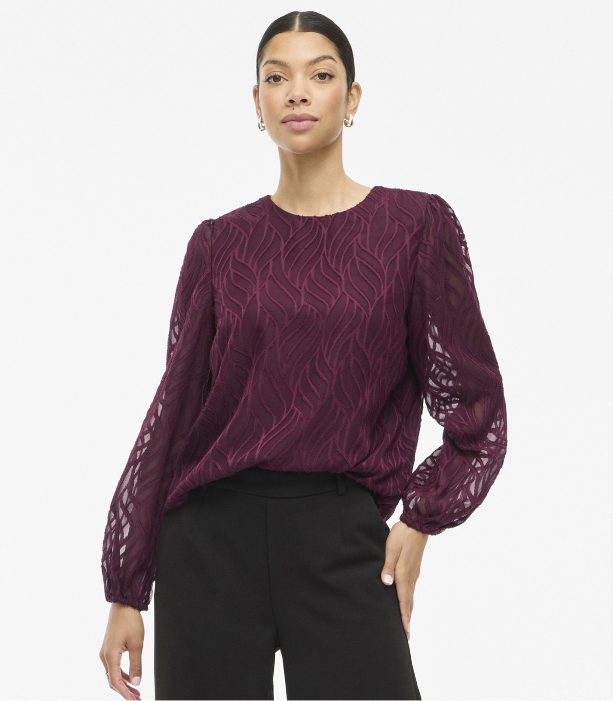 Elegantiška moteriška palaidinė „Vila“ tinka tiek kasdieniam dėvėjimui, tiek oficialioms progoms. Palaidinės liemuo yra su pamušalu, o permatomos rankovės sukuria moterišką ir lengvą įspūdį. Apvali iškirptė užsegama sagomis gale, o rankovių galuose yra tamprės.