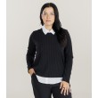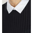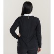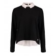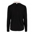 Elegantiška juoda palaidinė, papildyta kontrastingos spalvos balta apykakle ir baltu audinio sluoksniu apačioje, kuris sukuria sluoksniuoto efektą.
