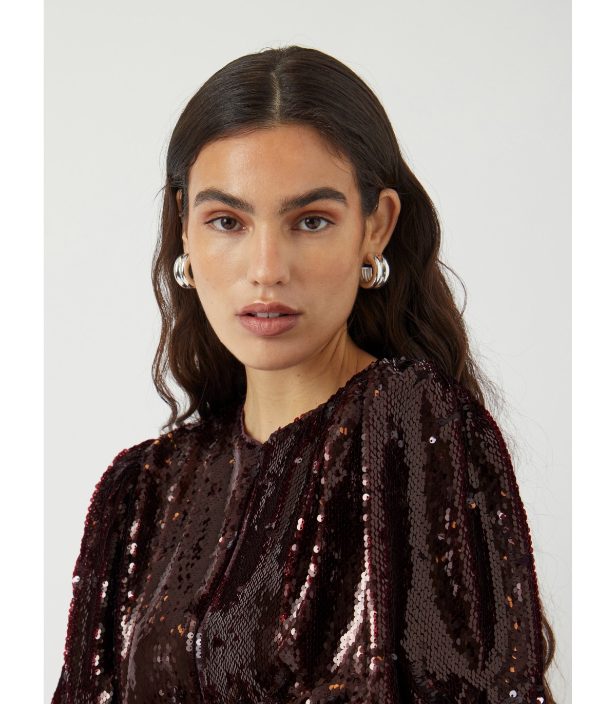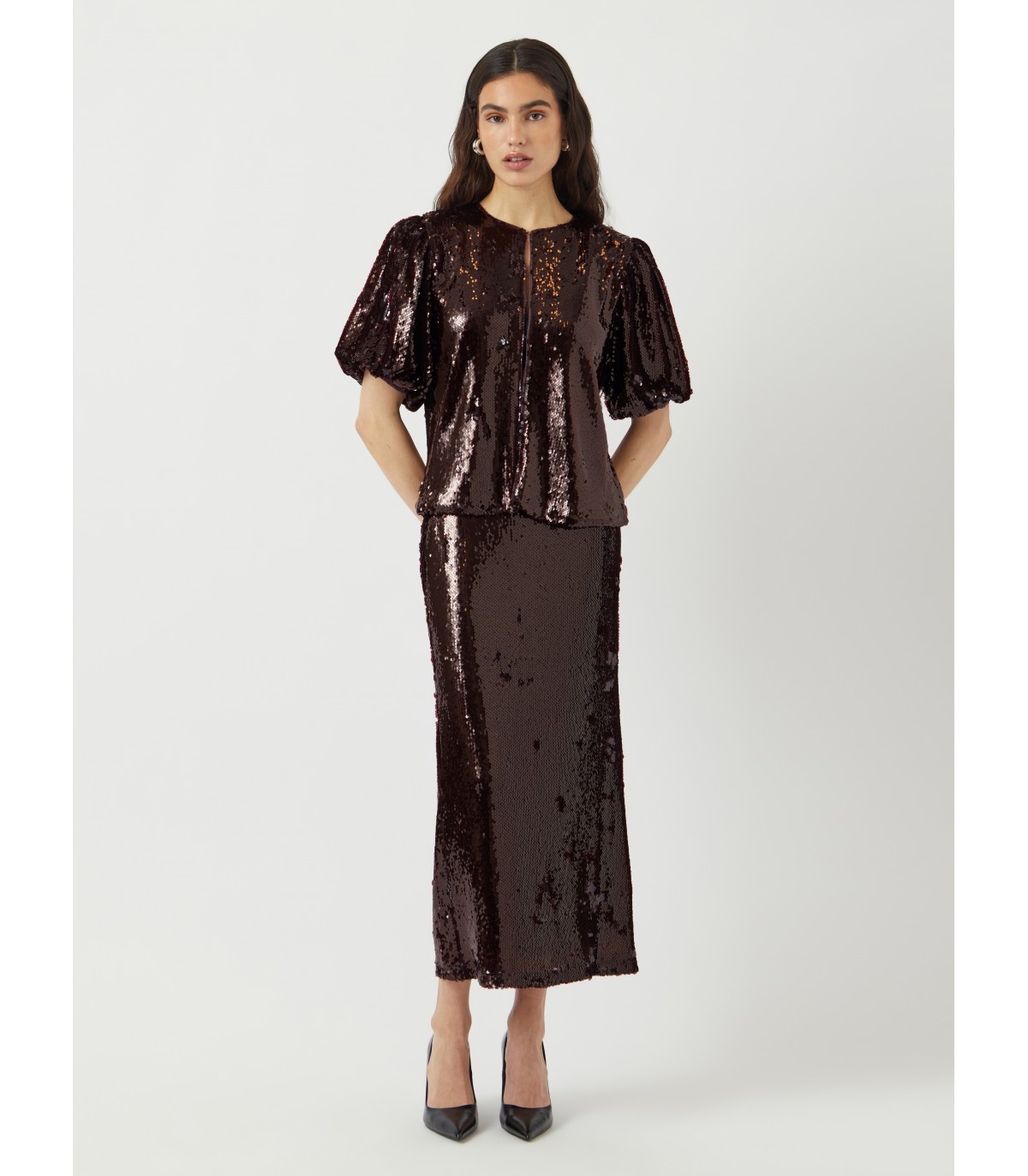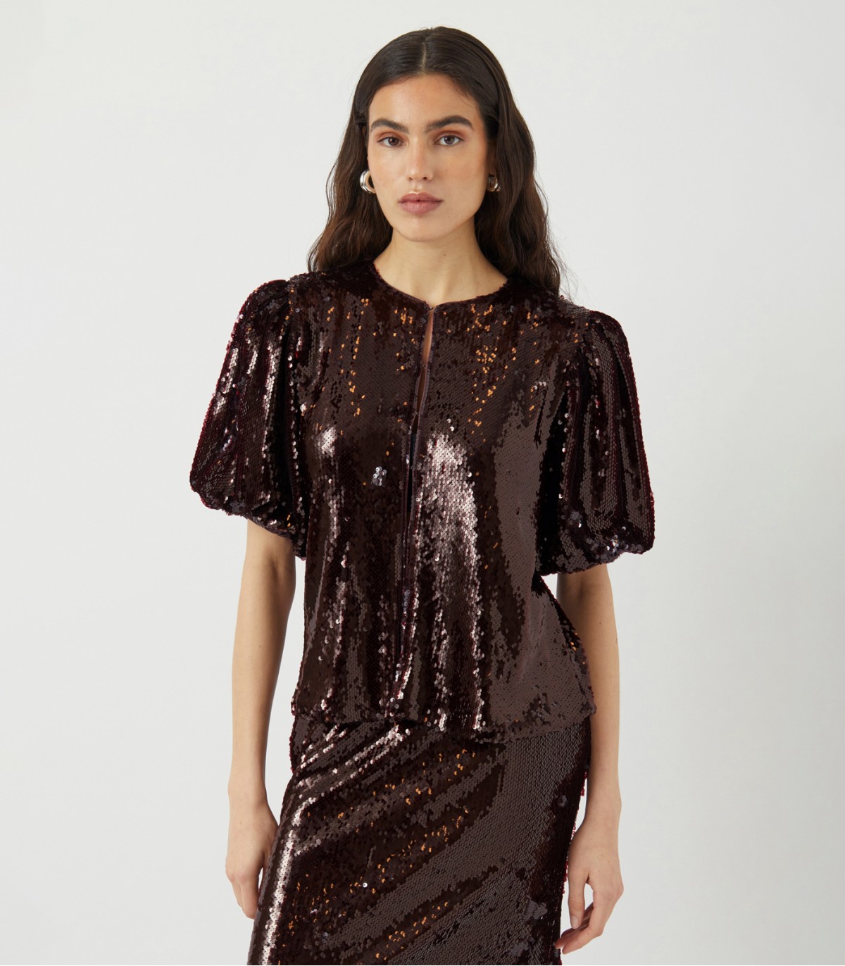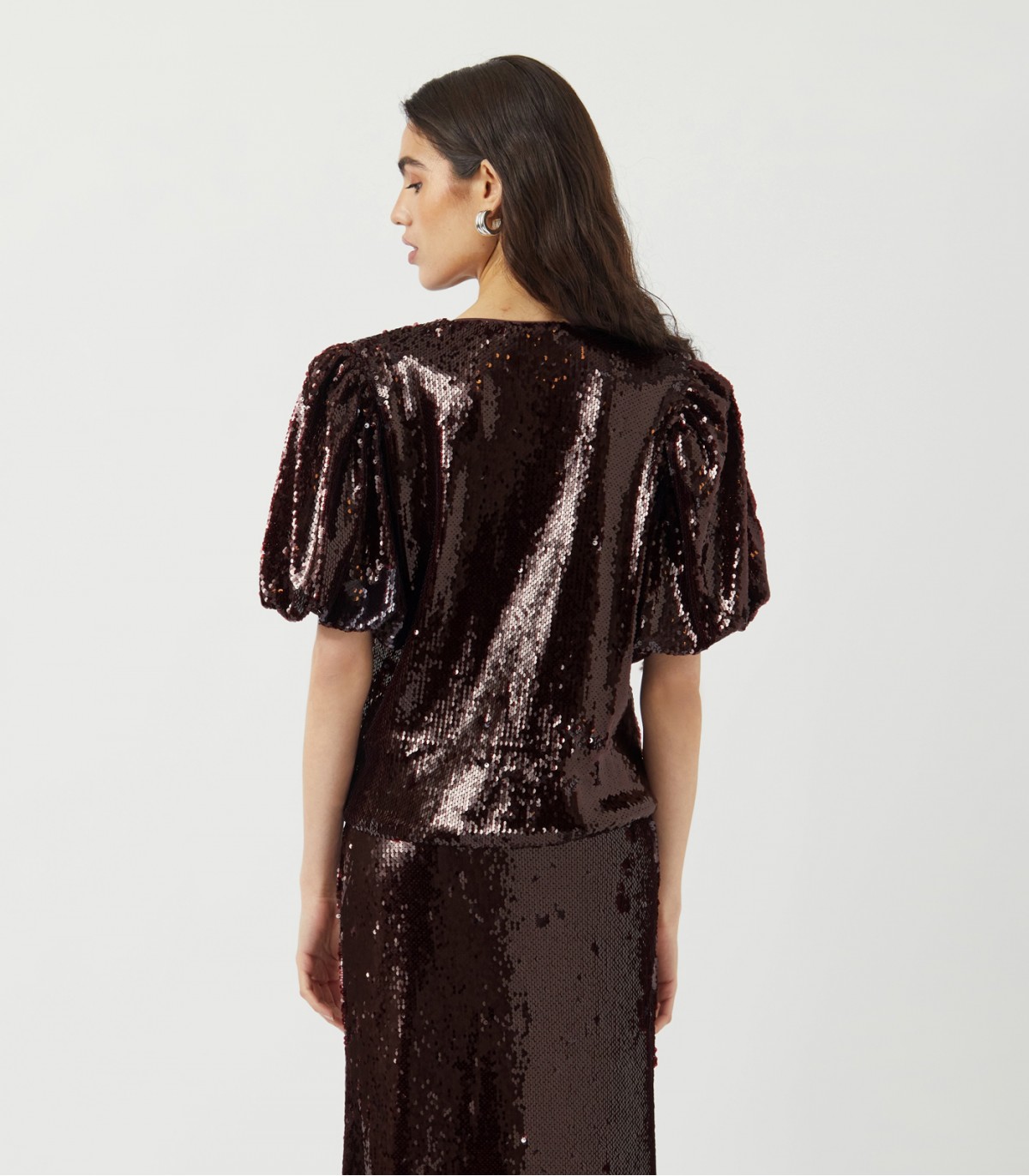 Elegantiška palaidinė su žvilgančiais blizgučiais ypatingoms progoms. Plačios, trumpos rankovės ir tiesaus kirpimo suteikia jai modernumo.
