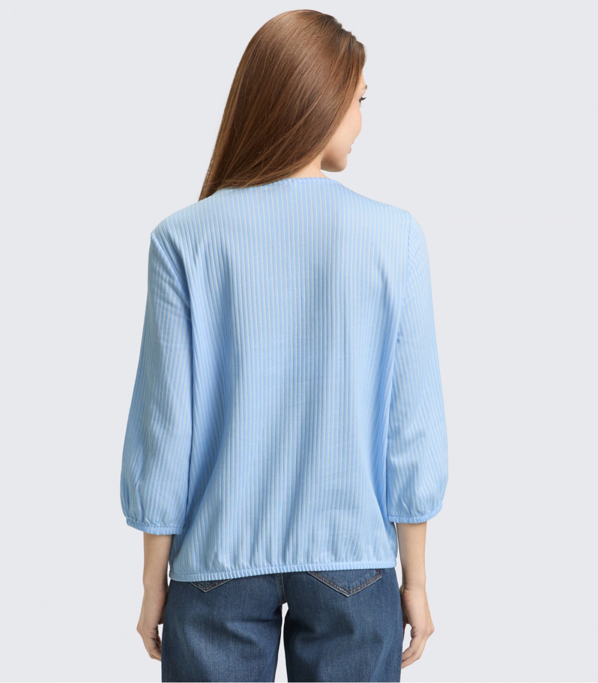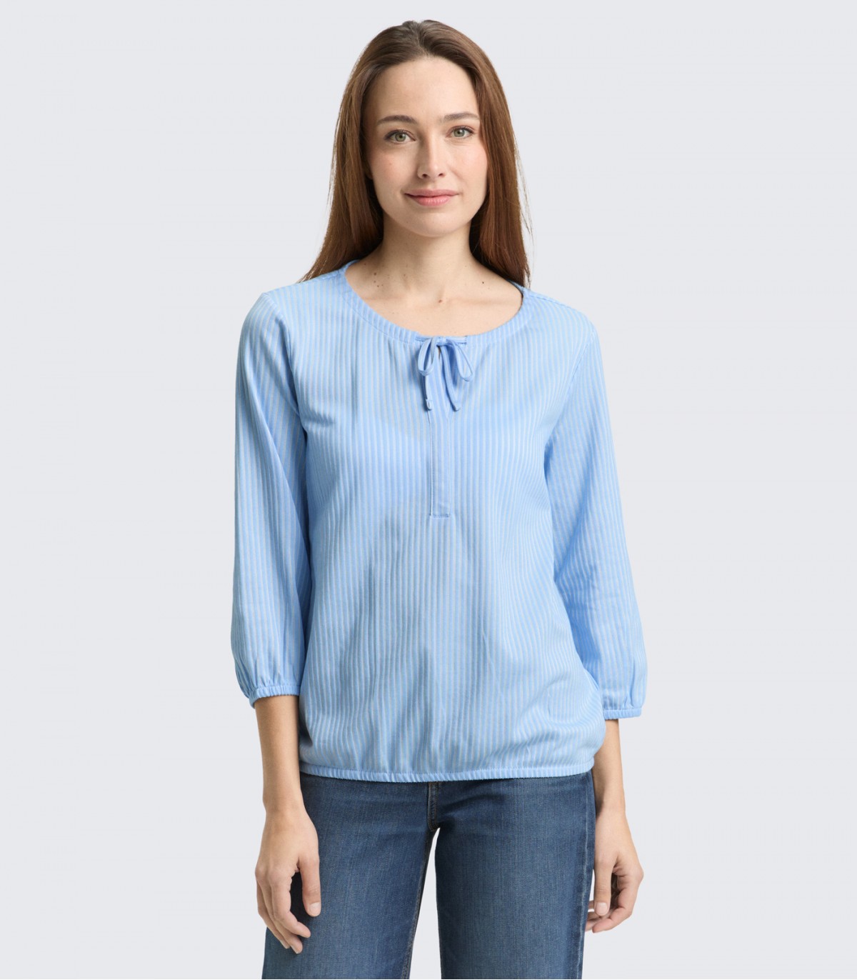 Ši moteriška 3/4 rankovių palaidinė su tampria juosmens juosta – puikus pasirinkimas norint stilingo ir patogaus kasdienio įvaizdžio. Dryžiai suteikia ryškumo, o tampri juosmens juosta užtikrina patogų prigludimą ir paryškina figūrą.