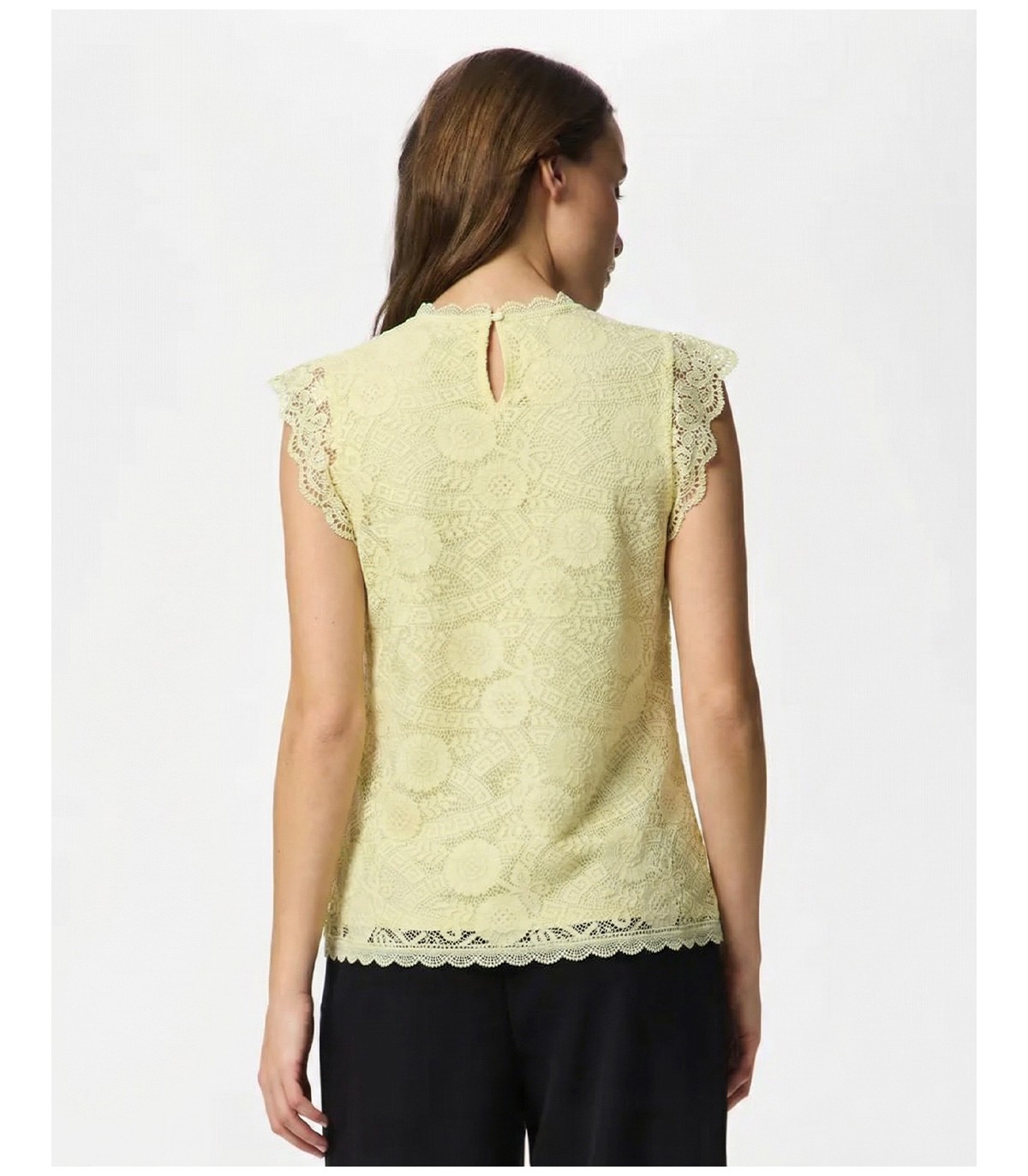 Elegantiškas ir moteriškas „Pieces“ berankovių nėrinių viršus idealiai tinka kasdieniam dėvėjimui ir ypatingoms progoms. Nėrinių kraštai ir nėrinių audinys viršuje sukuria romantišką išvaizdą.