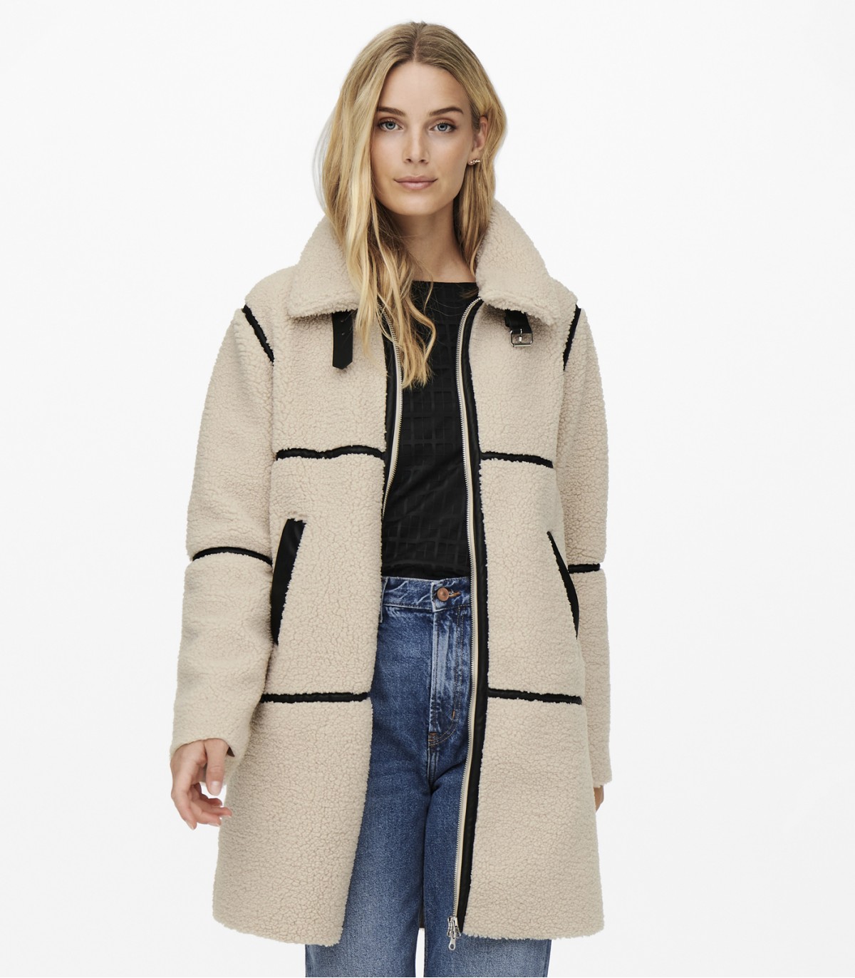 Praktiškas ir patogus moteriškas meškiuko paltas JDY vėsioms dienoms. Minkšta meškiuko medžiaga ir kontrastingos detalės sukuria modernų įvaizdį.