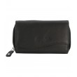 Moteriška odinė piniginė su atskiru užtrauktuku užsegamu skyriumi monetoms. Priekyje yra kortelių skyreliai, dokumentų skyreliai ir banknotų skyreliai su spaude. Gale yra atskiras kortelių skyrelis su permatoma kišene su spaude.