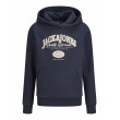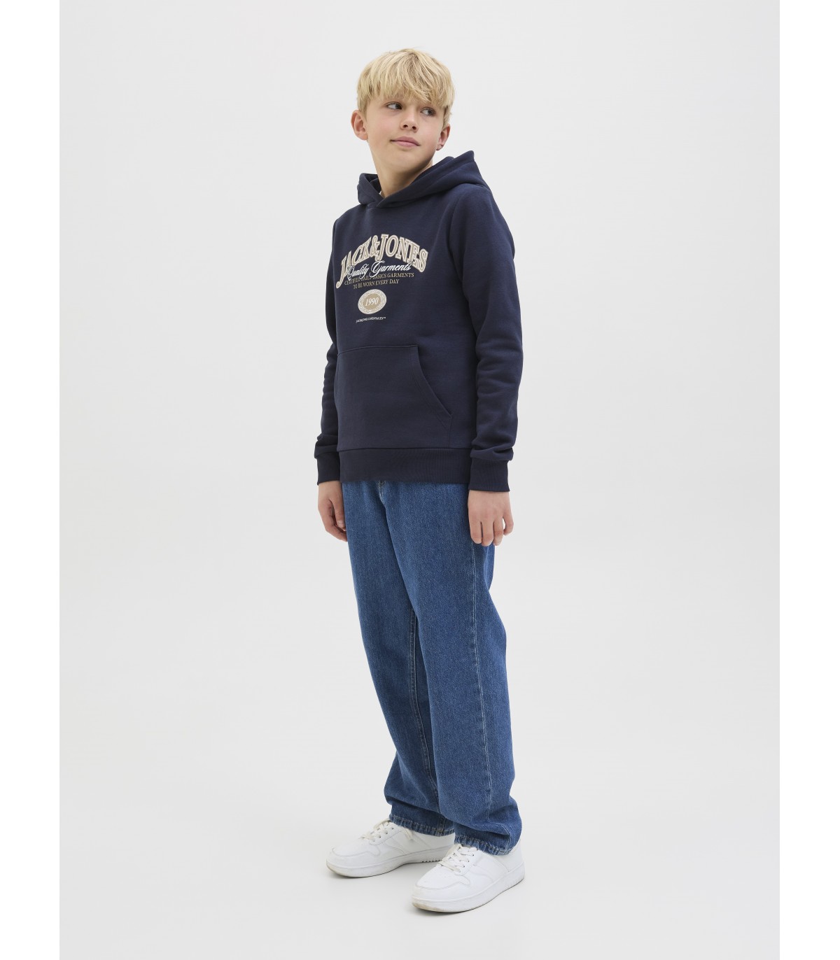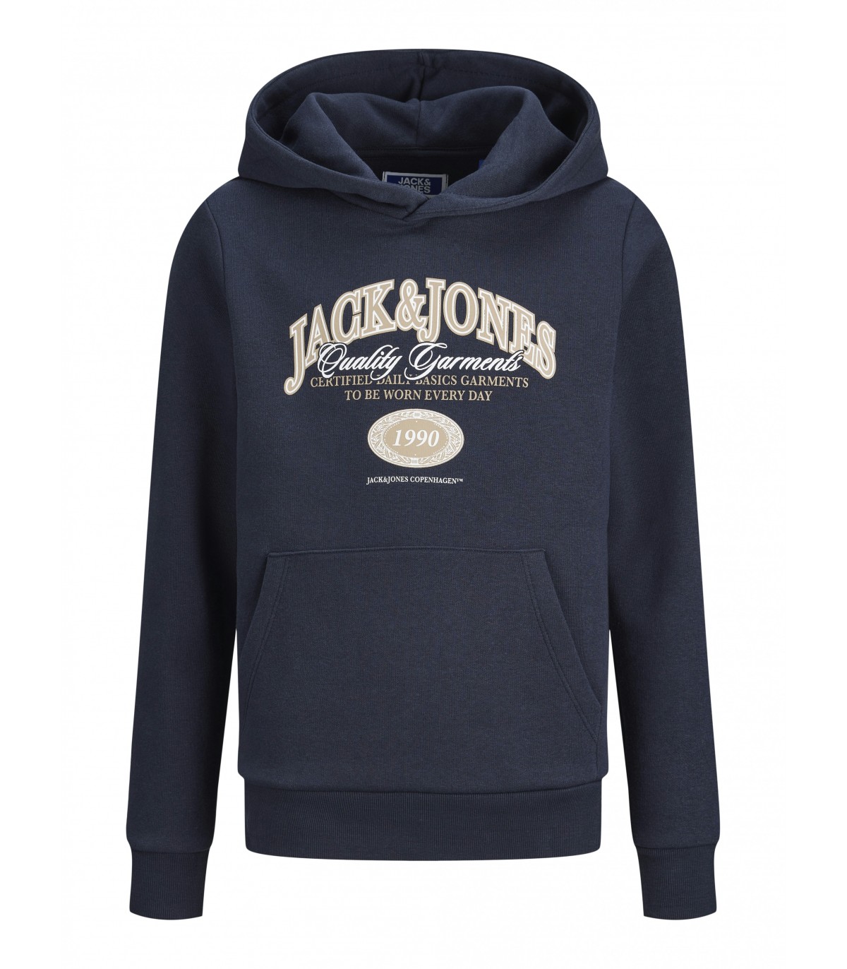 Šis JACK & JONES JUNIOR džemperis derina stilių ir patogumą. Pagamintas iš minkšto, patvaraus medvilnės mišinio, jis suteikia šilumos ir komforto. Klasikinis raišteliu surišamas gobtuvas užtikrina saugumą vaikams. Praktiška kengūros kišenė priekyje skirta smulkiems daiktams laikyti arba rankoms šildyti. Prekės ženklo logotipas atspausdintas ant krūtinės, suteikiant jam modernų, minimalistinį akcentą. Elastingi rankogaliai ir apačia užtikrina puikų prigludimą. Idealiai tinka kasdieniam dėvėjimui vėsesniu oru.