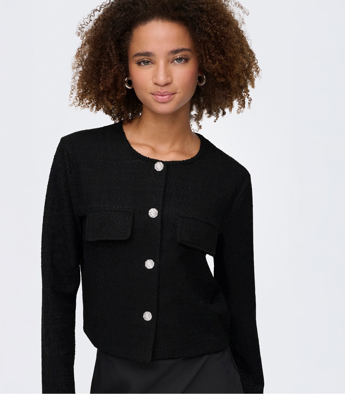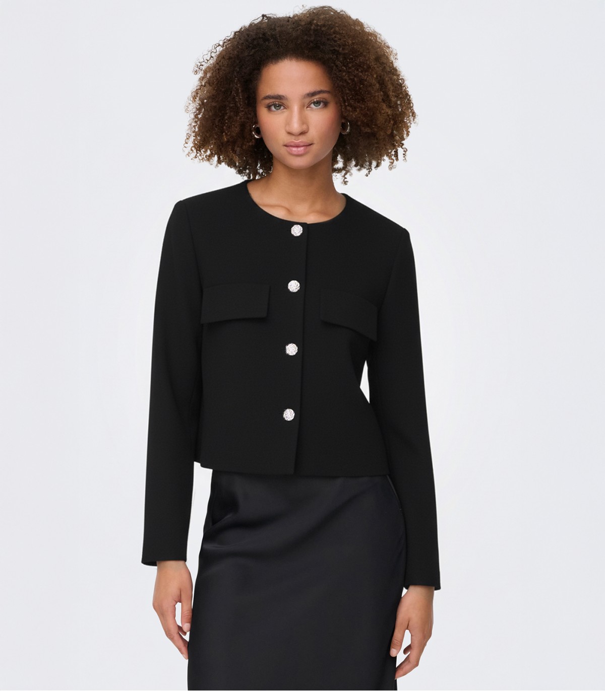 Trumpas JDY moteriškas švarkas puikiai tinka tiek oficialioms progoms, tiek laisvalaikiui. Struktūruotas audinys ir dekoratyvinės sagos suteikia jam klasikinį, bet modernų įvaizdį.