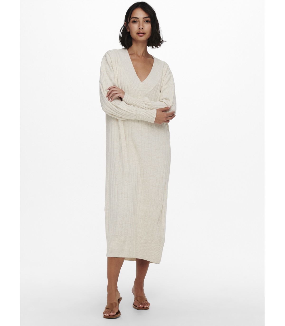 Ši stilinga megzta ilga suknelė iš ONLY pasižymi tekstūruota medžiaga, kuri suteikia jai šiuolaikišką ir madingą išvaizdą. V formos iškirptė paryškina dekoltė sritį ir suteikia išvaizdai elegancijos. Tiesus ir laisvas prigludimas suteikia komfortą ir judėjimo laisvę. Ilgos rankovės su aukštais rankogaliais suteikia grakštumo ir rafinuotumo. Ši suknelė idealiai tinka tiek kasdieniam, tiek puošniam įvaizdžiui sukurti, lengvai derinama su įvairiais aksesuarais ir batais.