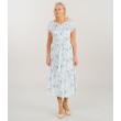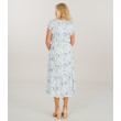 Erdvi ir lengva vasarinė suknelė be rankovių, pasiūta iš natūralių atspalvių lapų rašto audinio. Puikiai tinka šiltam orui.