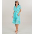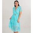 Moteriška ir įspūdinga, ši mėlyna nėriniuota suknelė puikiai tinka iškilmingiems renginiams ar vasaros akimirkoms. Suknelė pasiūta iš gražių gėlių nėrinių ir turi pamušalą. V formos iškirptė ir trumpos pūstos rankovės suteikia suknelei romantiškumo. Dekoratyvinis diržas su sagtimi paryškina figūrą. Apačia gražiai raukšlėta ir šiek tiek permatoma, todėl suknelė atrodo erdvi.