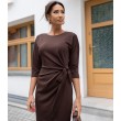 Elegantiška suknelė su šoniniu mazgu, kuris pabrėžia moterišką siluetą. Suknelė turi 3/4 rankoves, apvalią iškirptę ir šoninį skeltuką, tinka tiek ypatingoms progoms, tiek kasdienai. Vidutinio ilgio modelis yra patogus ir universalus.
