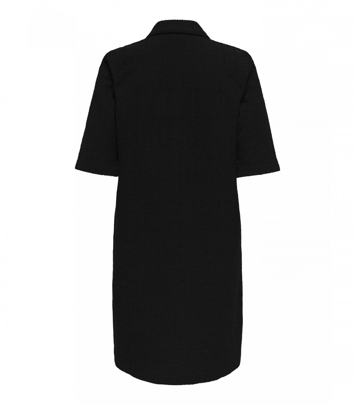 Paprasta ir patogi buklė suknelė su marškinių apykakle ir trumpomis rankovėmis. Lakoniškas trumpintas kirpimas ir sagų užsegimas daro modelį idealiai tinkantį darbui, studijoms ir kasdieniam laisvalaikiui.