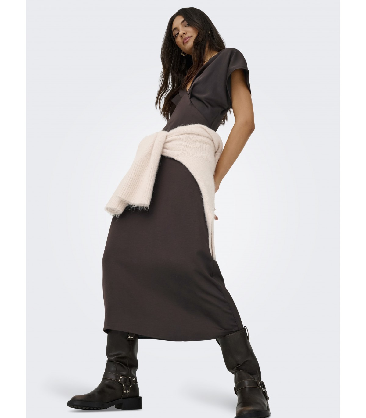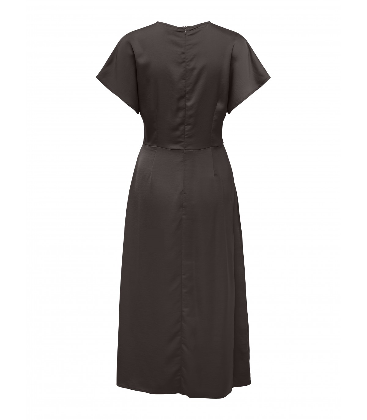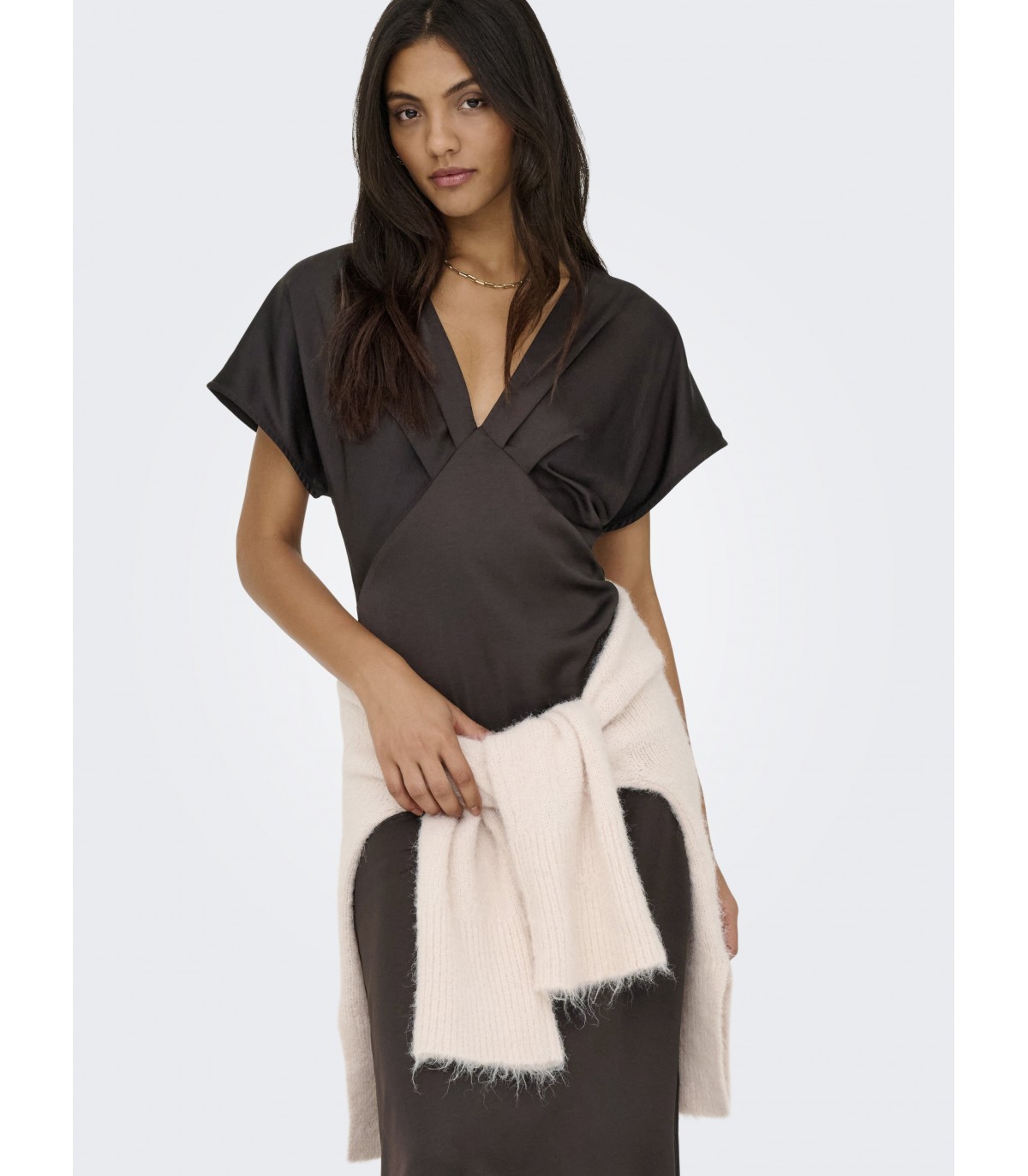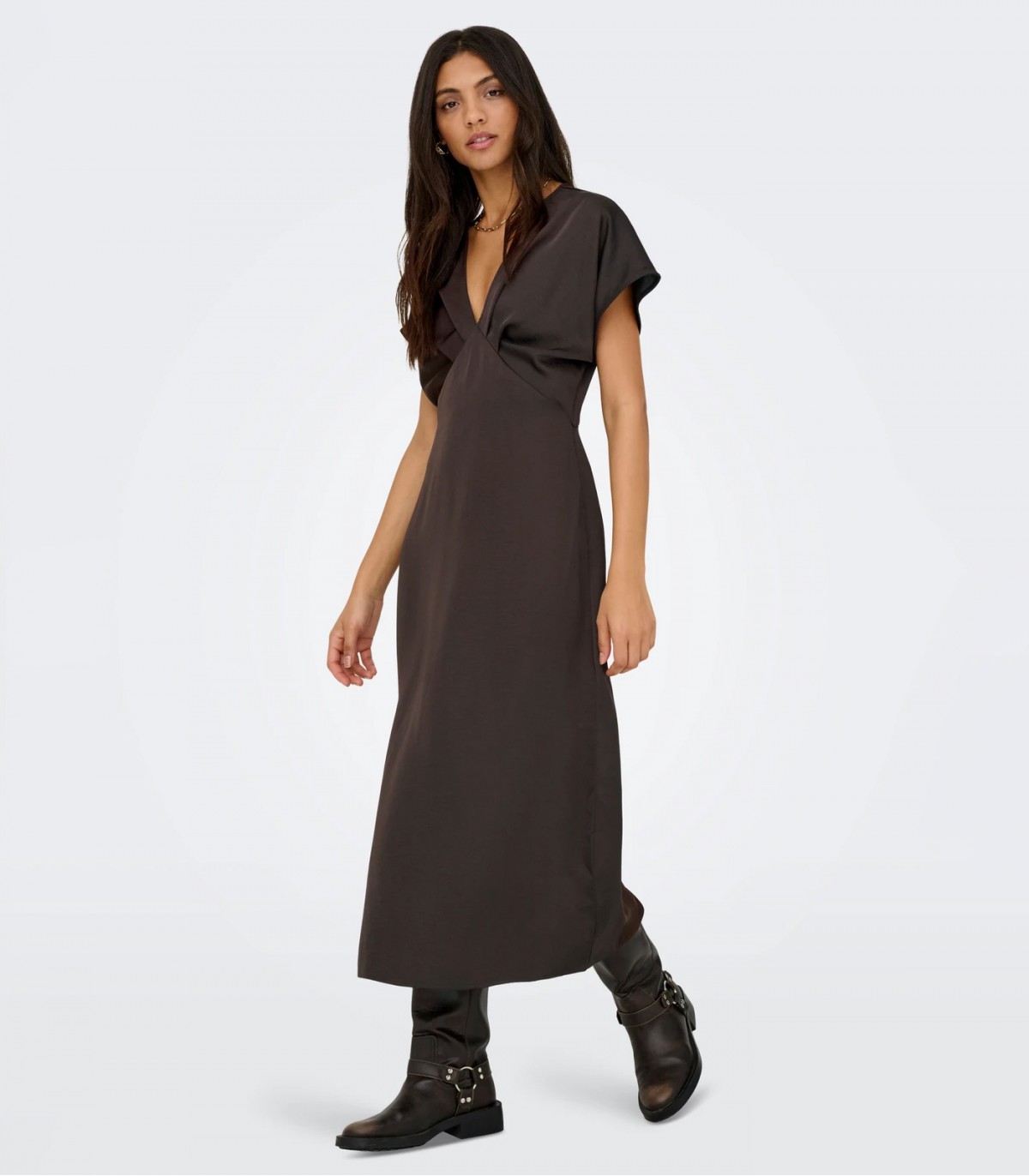 Ši paprasta, moteriška suknelė puikiai tinka tiek kasdienai, tiek oficialioms progoms. Ji turi V formos iškirptę ir trumpas rankoves.