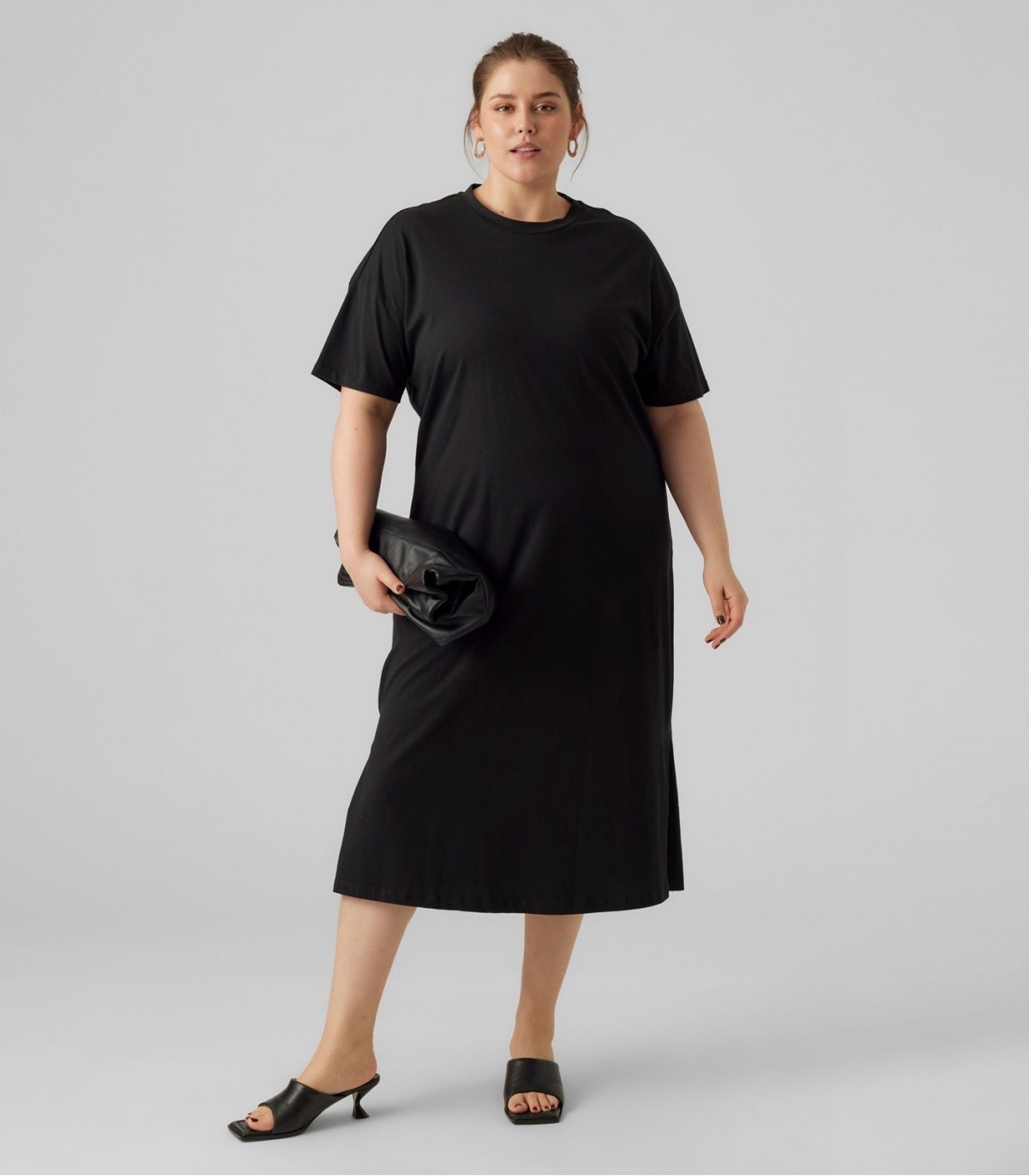 Ši paprasta suknelė puikiai tinka tiek kasdienai, tiek neformalioms progoms. Klasikinis kirpimas ir šoniniai skeltukai suteikia jai patogumo ir nesenstančio žavesio.