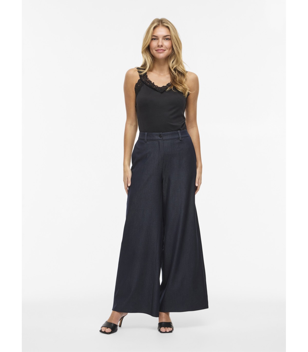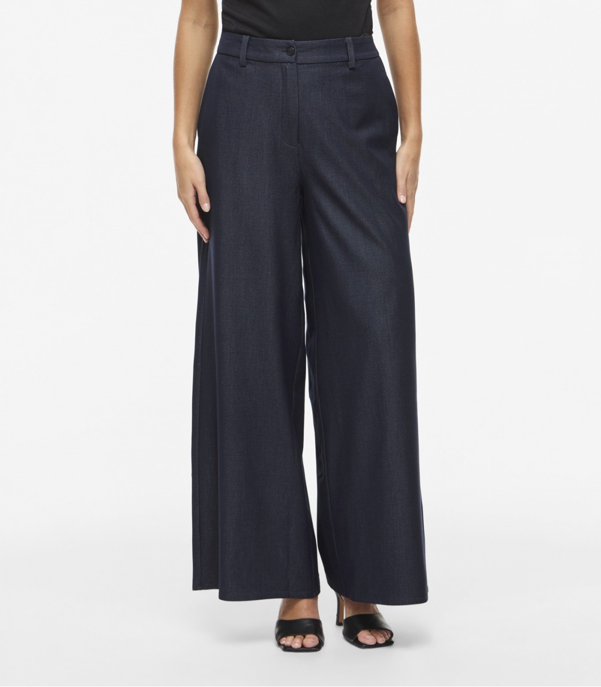 Patogios ir stilingos, šios plačios tiesios kelnės puikiai tinka tiek kasdienai, tiek oficialioms progoms. Vidutinio aukščio juosmuo ir tampri juosmens juosta užtikrina patogų prigludimą.