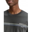 Paprasti, patogaus kirpimo, trumpomis rankovėmis marškinėliai su stilingu dryžuotu logotipo užrašu ant krūtinės. Modelis pasiūtas iš minkštos, vieno sluoksnio medvilninio džersio medžiagos, todėl yra patogūs ir praktiški kasdieniam dėvėjimui.