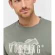Klasikiniai vyriški marškinėliai su dideliu kontrastingu „Mustang“ logotipo ir arklio atvaizdo atspaudu priekyje. Patogus ir lengvai derinamas modelis kasdieniam dėvėjimui.