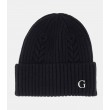 Stilinga briaunota megzta kepurė su dekoratyvinėmis pynelėmis ir metaliniu logotipu. Ji suteikia šilumos ir komforto, suteikdama jaukumo ir mados bet kokiam įvaizdžiui.