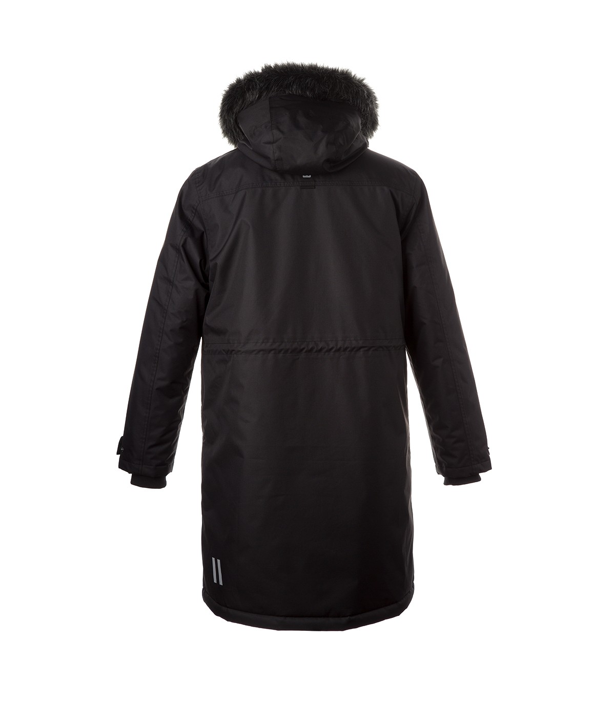 Vyriškas neperšlampamas ir vėjui atsparus žieminis parkas. Kvėpuojantis išorinis audinys. Palto vidus pasiūtas iš minkšto audinio. Dirbtinio avikailio pamušalas nugaroje ir gobtuvo viduje.