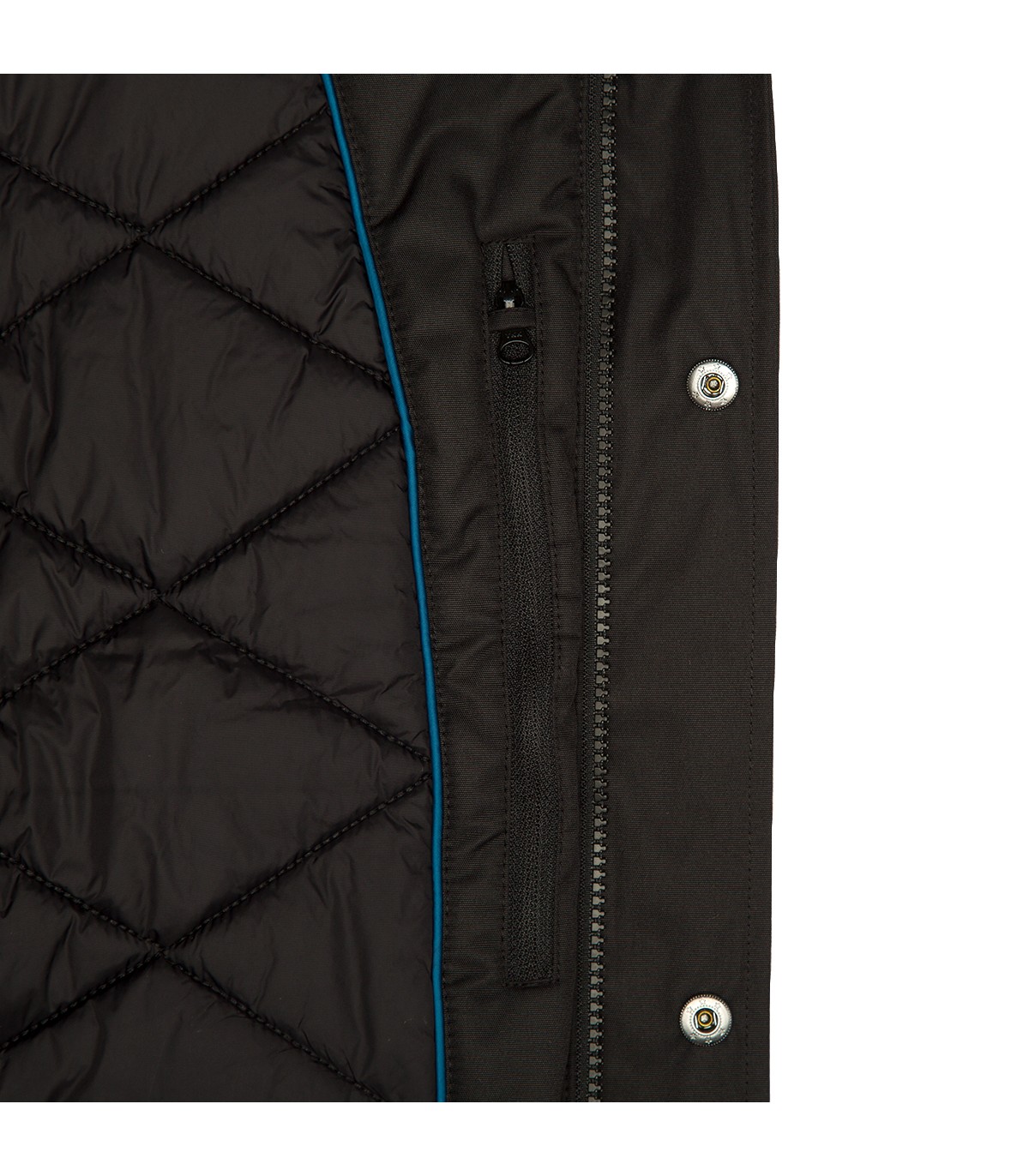 - Dviejų krypčių užtrauktukas, padengtas apsauginiu atvartu priekyje.
