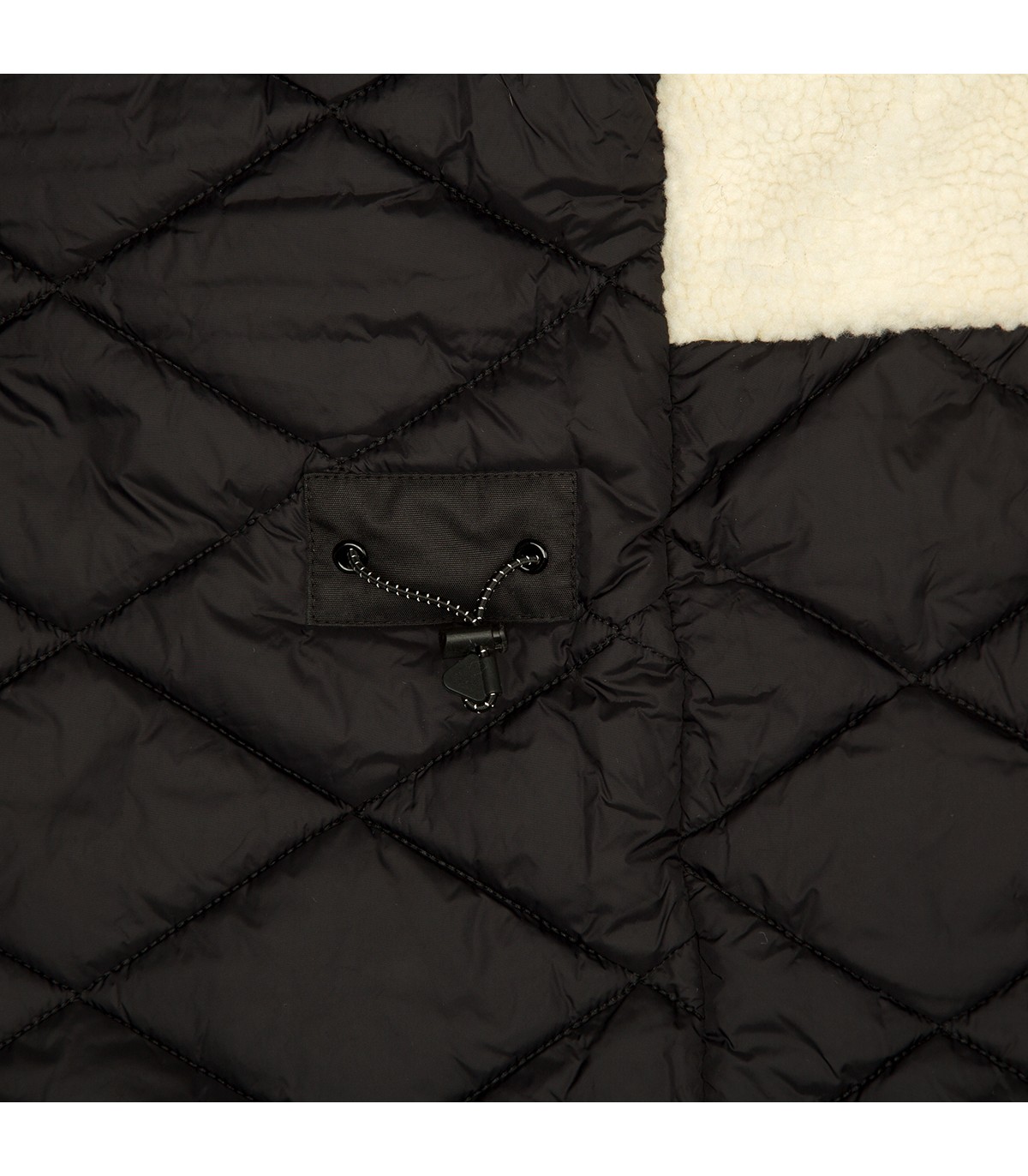 - Dirbtinis avikailis viršutinėje nugaros dalyje ir gobtuvo viduje.