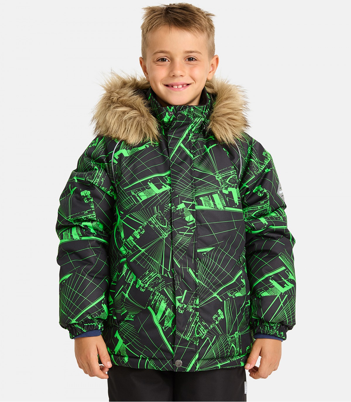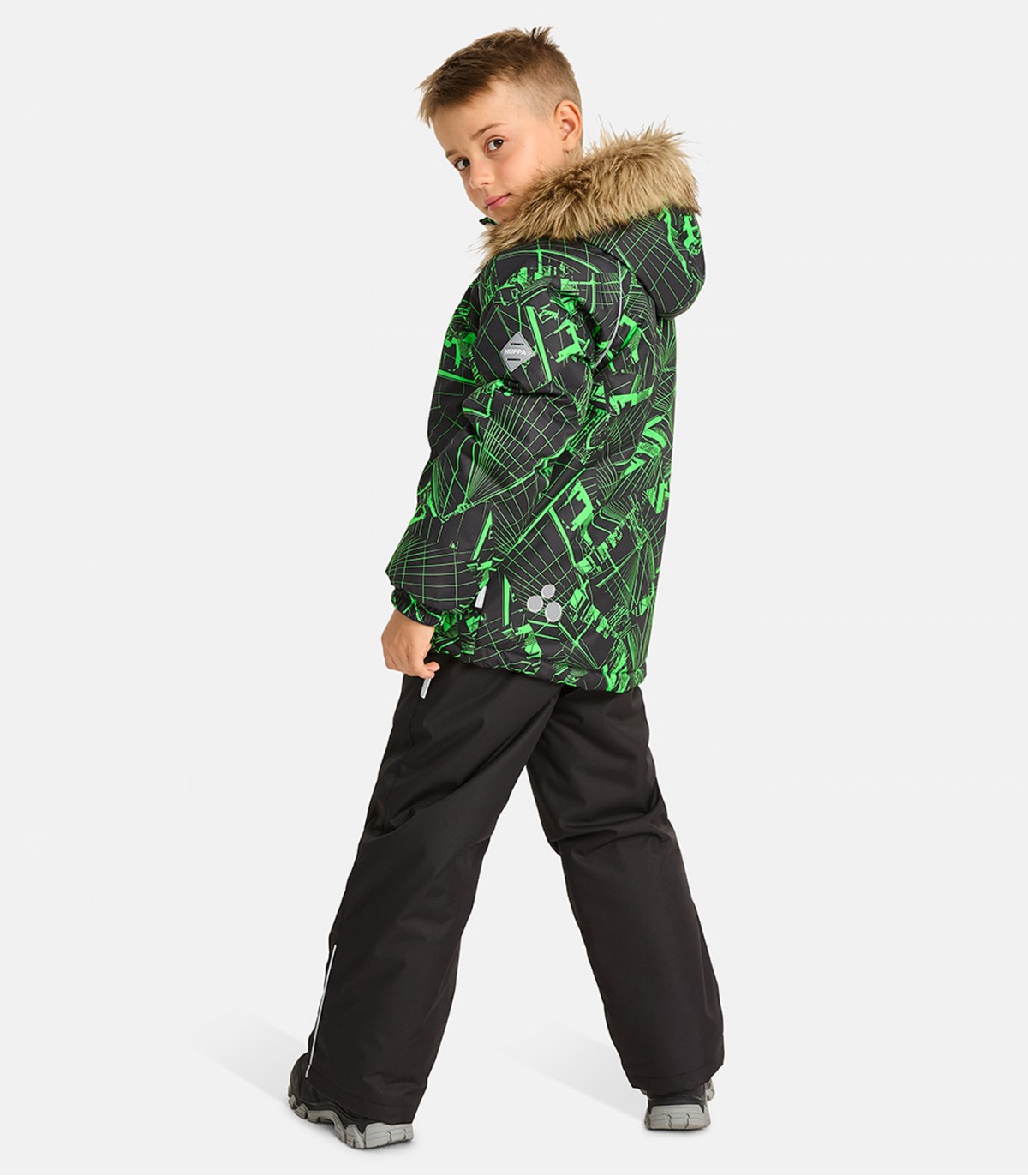 Žieminis vaikiškas rinkinys – idealus sprendimas Jūsų vaiko aktyviam laisvalaikiui šaltuoju metų laiku. Rinkinys patogus, madingas, stilingas, patogus naudoti, atsparus vėjui, labai atsparus dilimui, gerai išlaiko šilumą viduje, pašalina garų perteklių į išorę, „kvėpuoja“, sukuria kiekvienam savo individualų vidinį mikroklimatą, hipoalergiškas, lengvas, lengvas priežiūrai, tinka kasdieniam naudojimui lauke esant temperatūrai nuo 0°C iki -30 žemiau nulio. Striukė turi nuimamą gobtuvą su kailiu, kišenes ir elastinius rankogalius. Kelnės aukštu liemeniu turi reguliuojamus guminius dirželius ir apsaugą nuo sniego. Šviesą atspindinčios detalės padidina saugumą tamsoje.