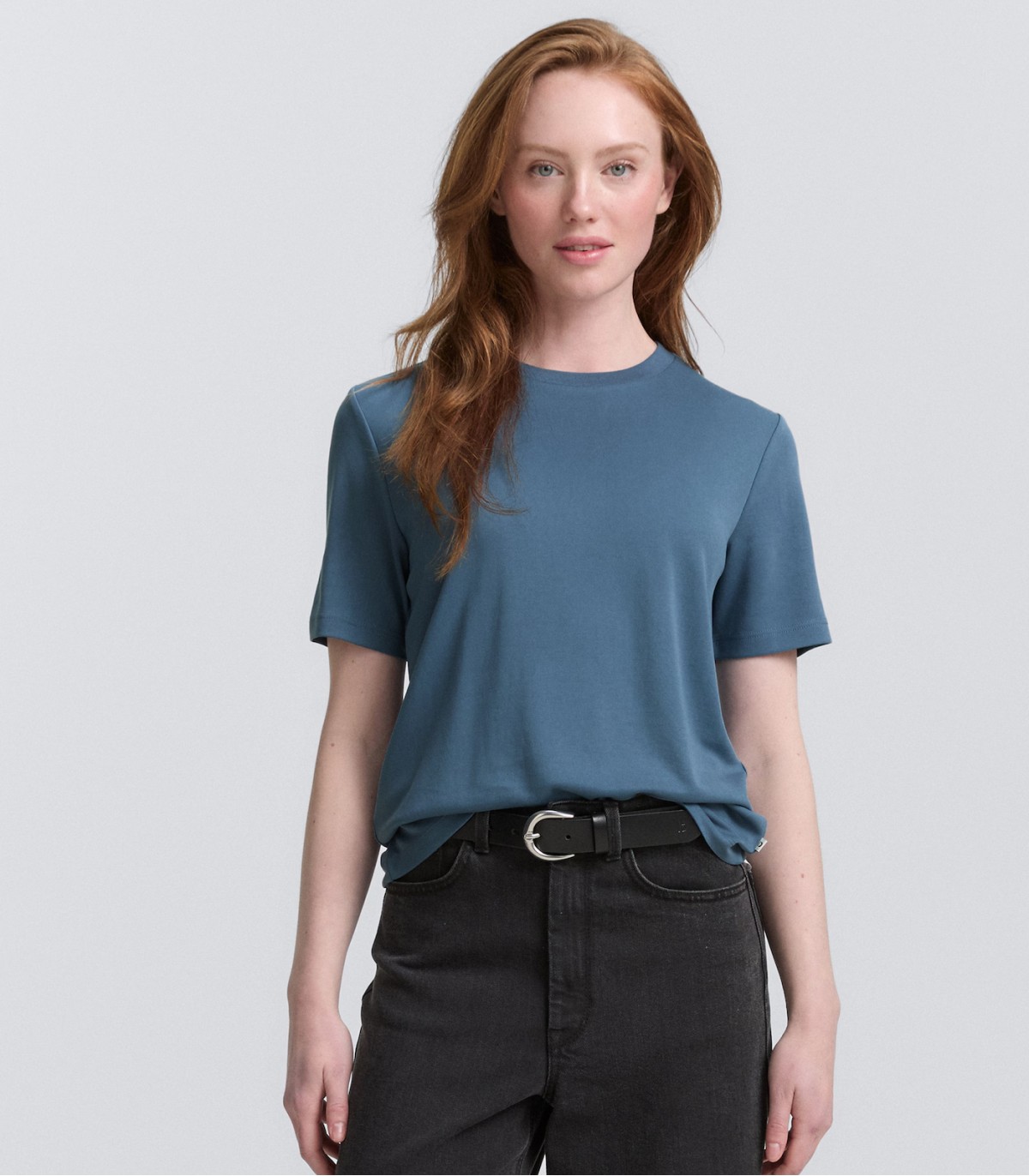 Vaba lõikega T-särk on valmistatud tekstuursest pikeekangast. Klassikaline ümar kaelus ja lihtne ühevärviline disain on mitmekülgne igapäevaseks kandmiseks.