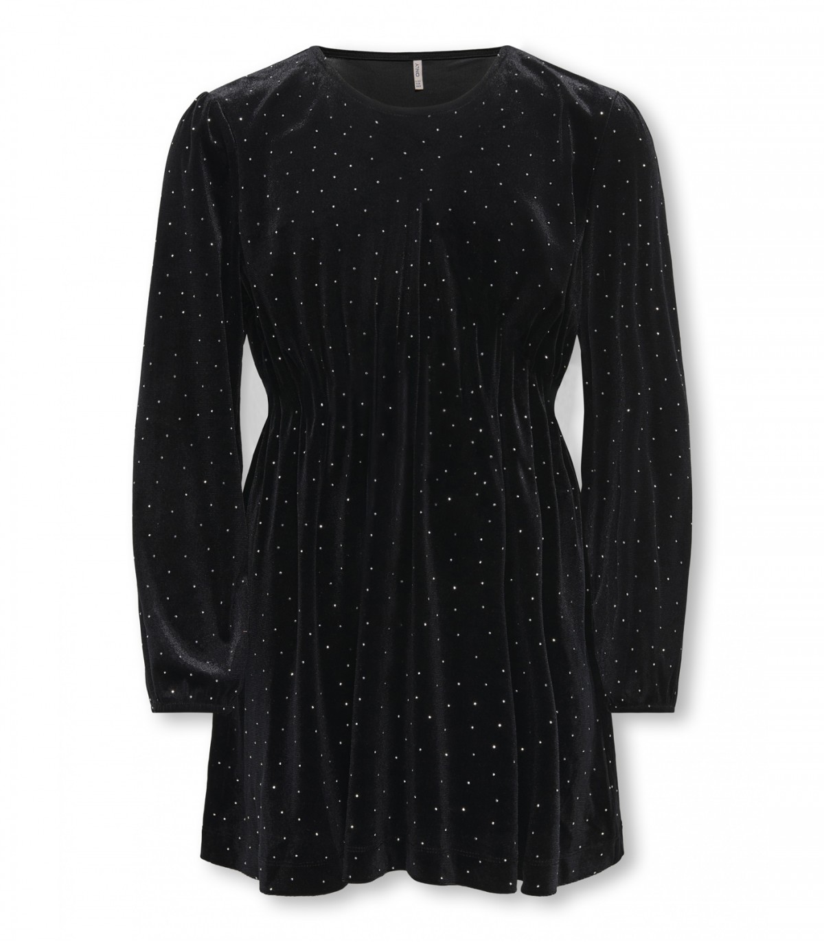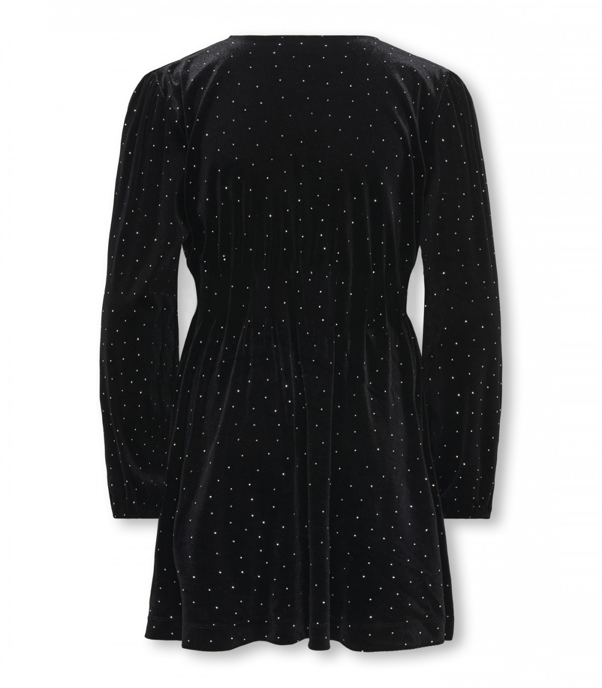 Pidulik must kleit väikeste sädelevate kivikestega lisavad elegantsi ja sära igale sündmusele. Pehme ja meeldivalt veniv materjal istub mugavalt, sobib hästi nii peole kui ka pühadeajaks.