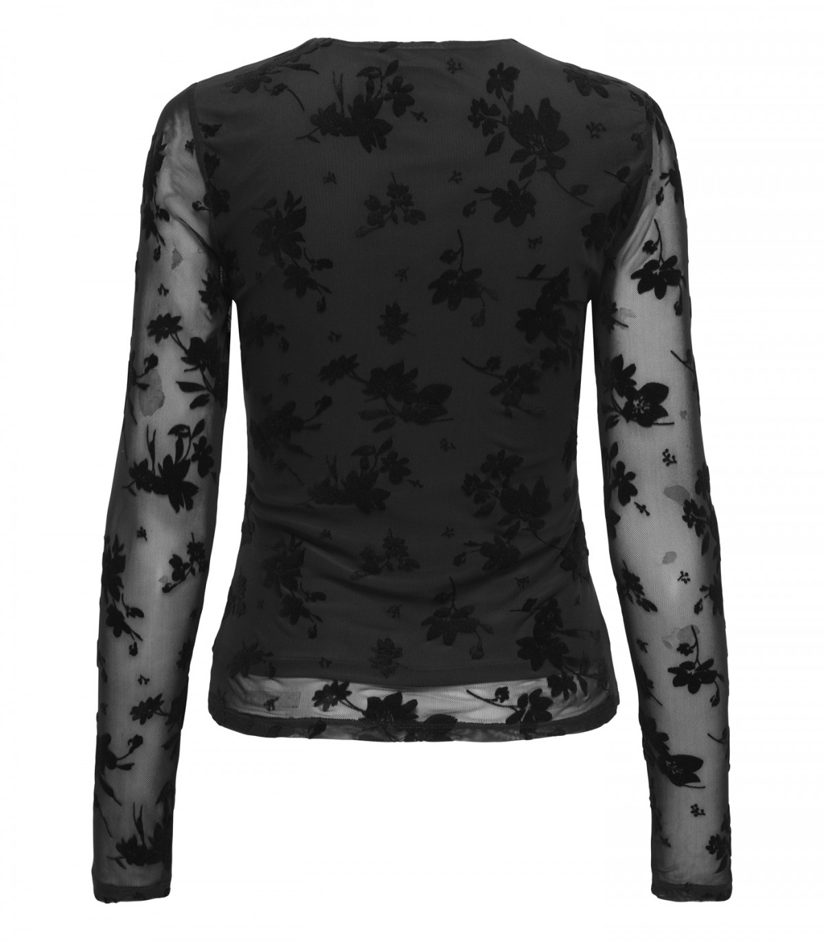 Poolläbipaistev must pluus sametise mustriga.
