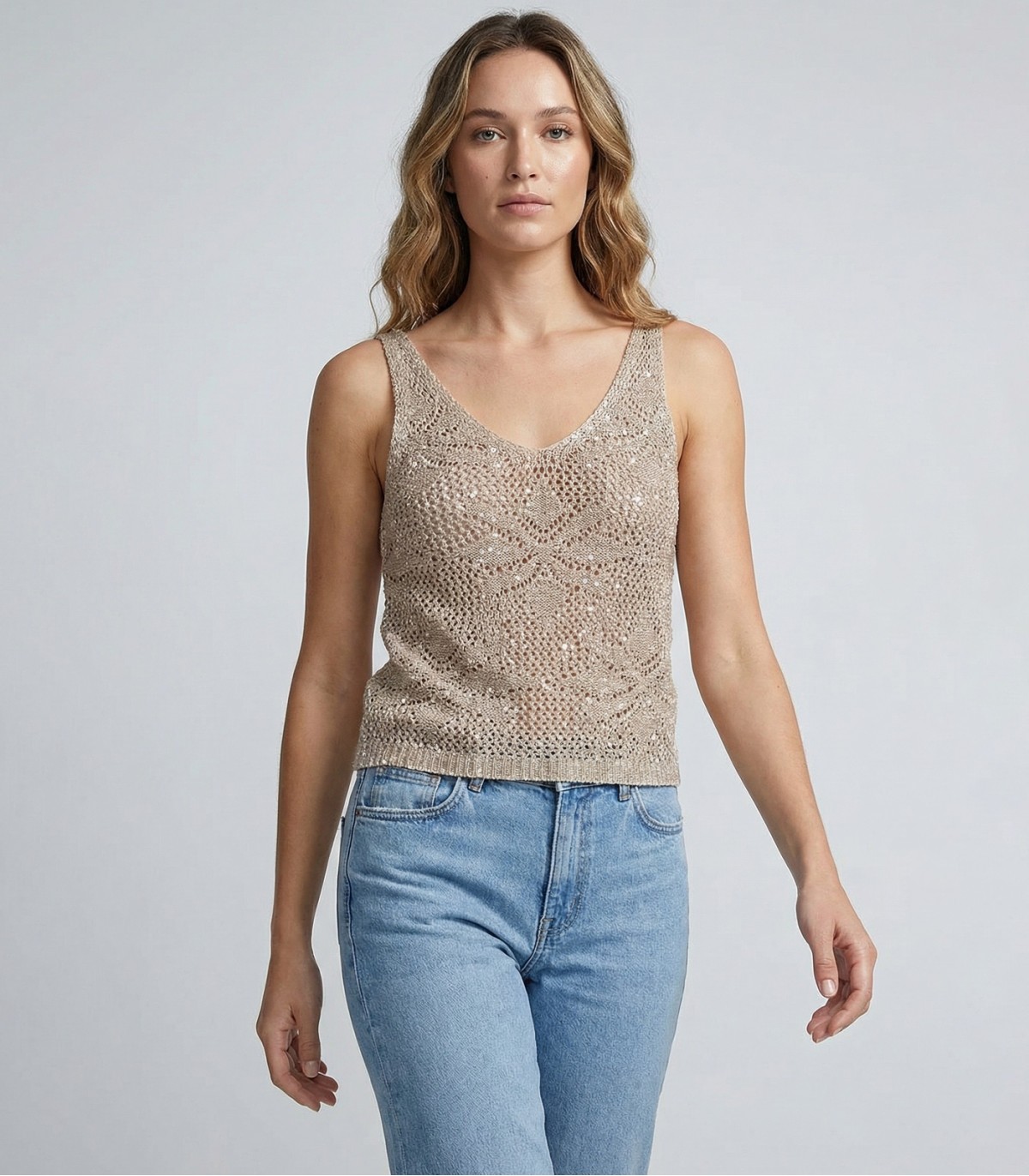 Sädelev Vero Moda naiste kootud topp on pilkupüüdev nii igapäevases kui ka pidulikumas komplektis. Õhuline kootud struktuur ja litritega pind annavad topile kerge läike, mis sobib hästi kombineerimiseks näiteks teksade, seelikute või pükstega.