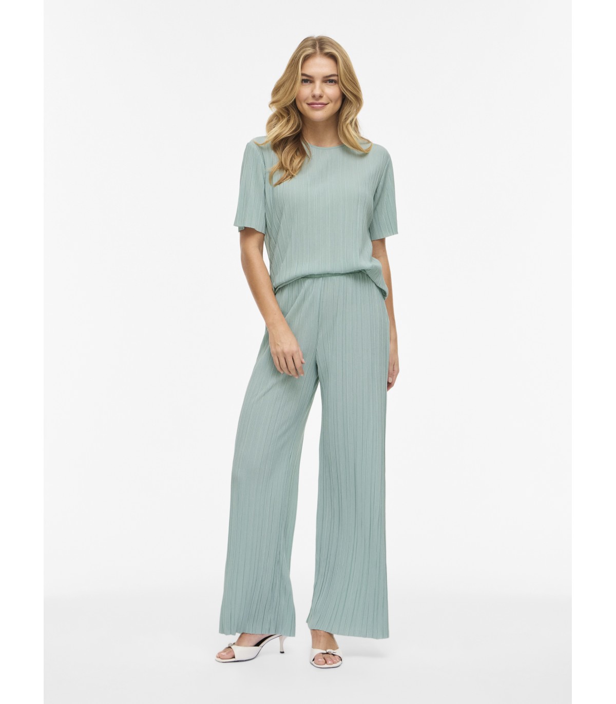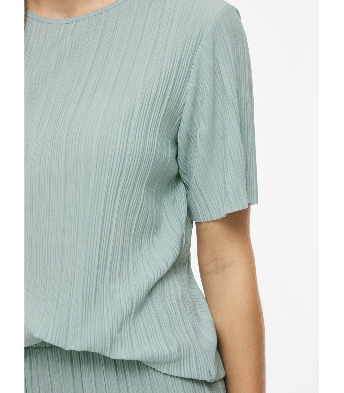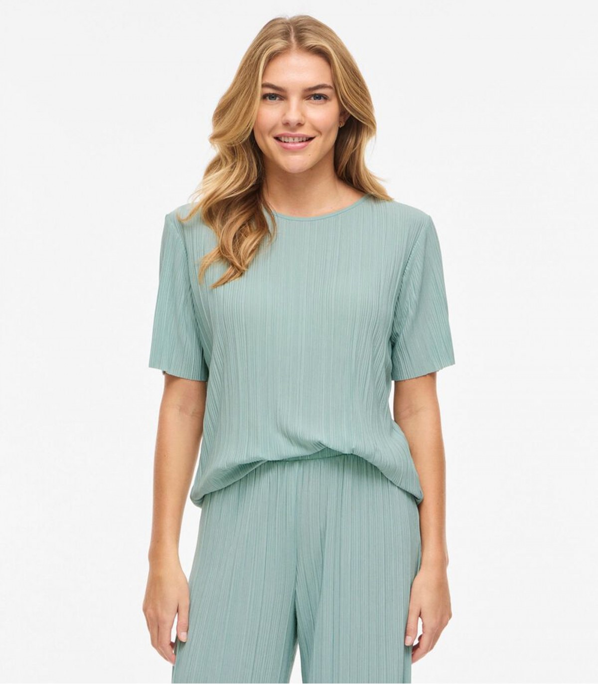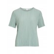 Kerge ja voogava tekstuuriga Vila naiste t-särk. Vertikaalne plisseeritud kangapind annab lihtsale lõikele liikuva ja õhulise ilme ning sobib hästi kombineerimiseks sama kollektsiooni pükste või erinevate seelikute ja teksadega.