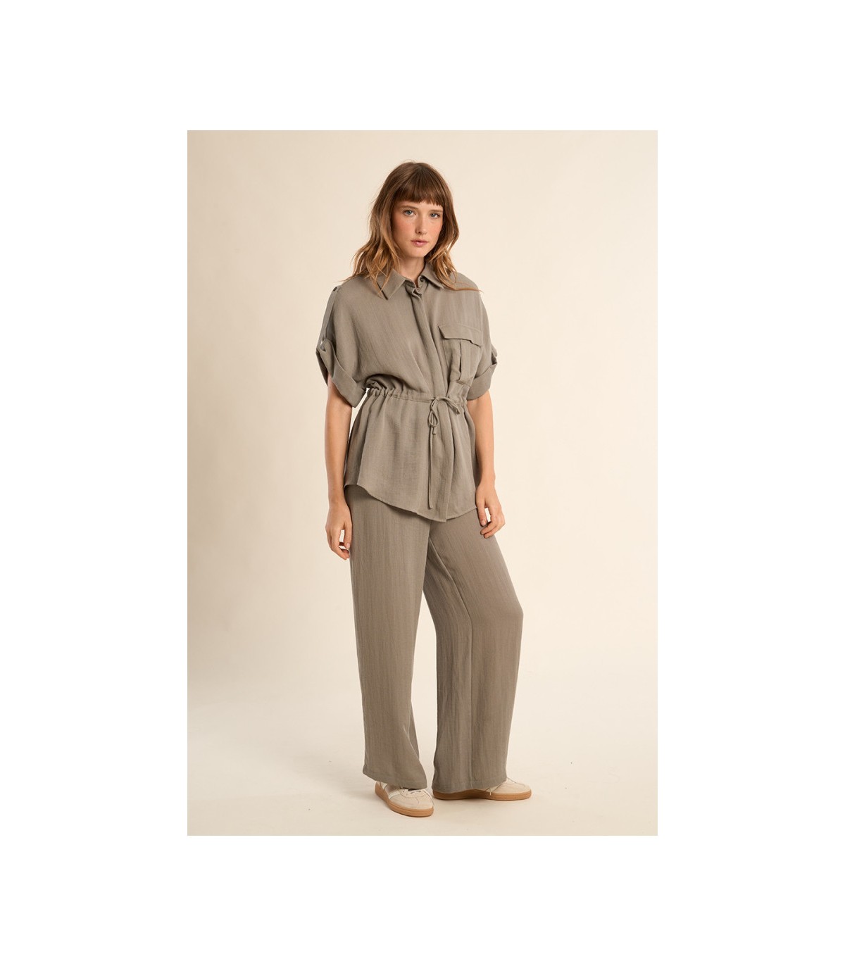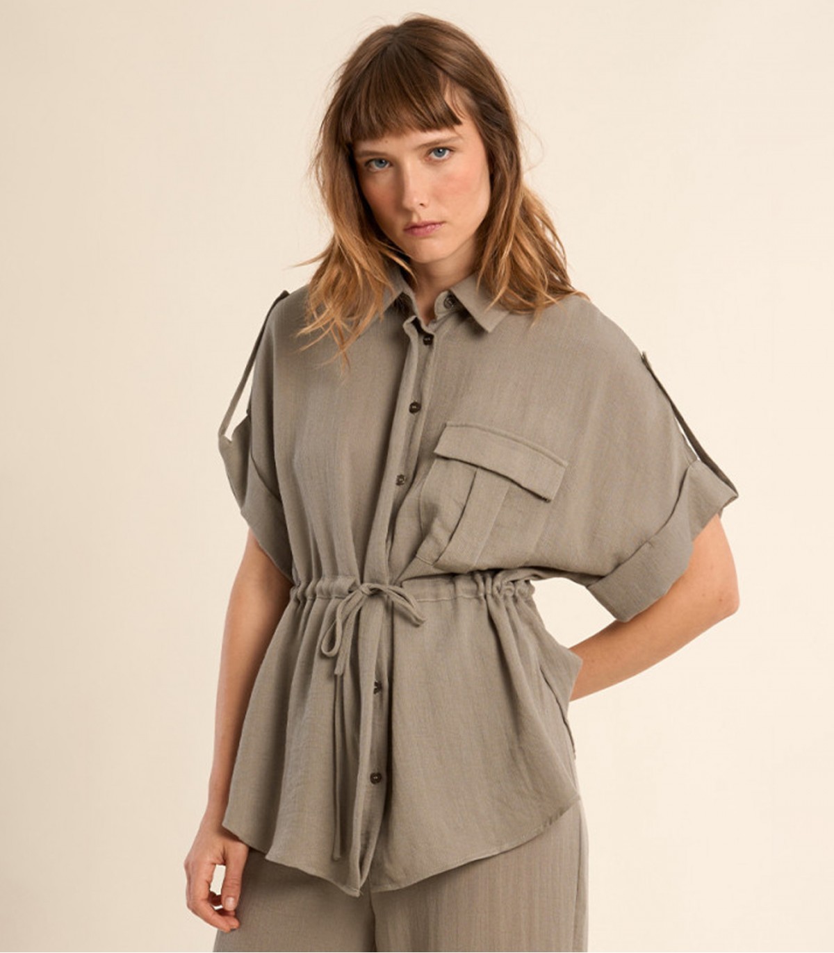 Kerge ja vabalt langev safari-stiilis pluus igapäevaseks kandmiseks.
