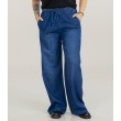 Vaba lõikega sinised naiste püksid sobivad suurepäraselt igapäevaseks kandmiseks. Elastne paeltega värvel istub mugavalt.