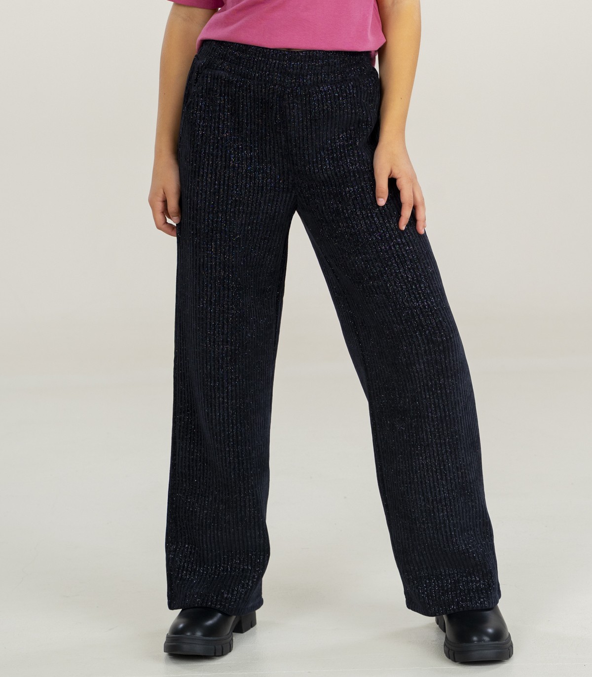 Mugavad ja läikivad Guess tüdrukute püksid. Elastse värvli ja pehme velvetise tekstuuriga püksid sobivad hästi nii pidulikumateks sündmusteks kui ka vaba aja veetmiseks. Kanga koostises on luksuslikult sädelev niit. Tagataskut kaunistab südamekujuline Guess logomärk.