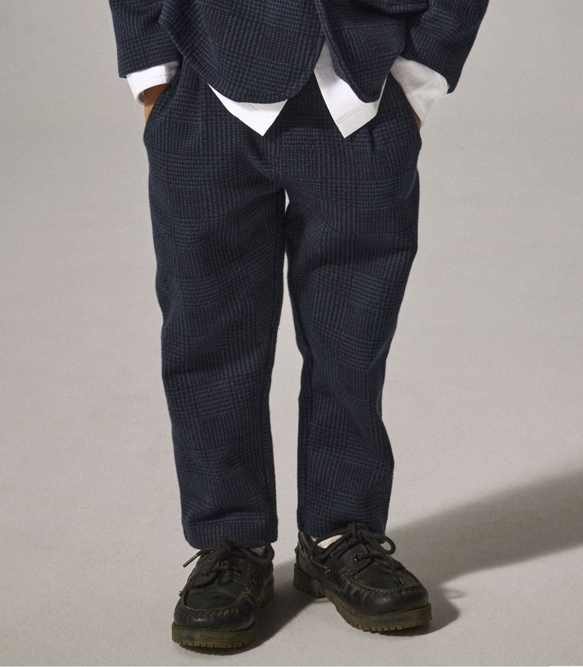 Mugavad ja hästiistuvad poiste püksid reguleeritava vöökoha ja klassikalise lõikega. Pehme kangas ja peen ruuduline muster on sobivad nii igapäevaseks kandmiseks kui ka pidulikumateks puhkudeks.