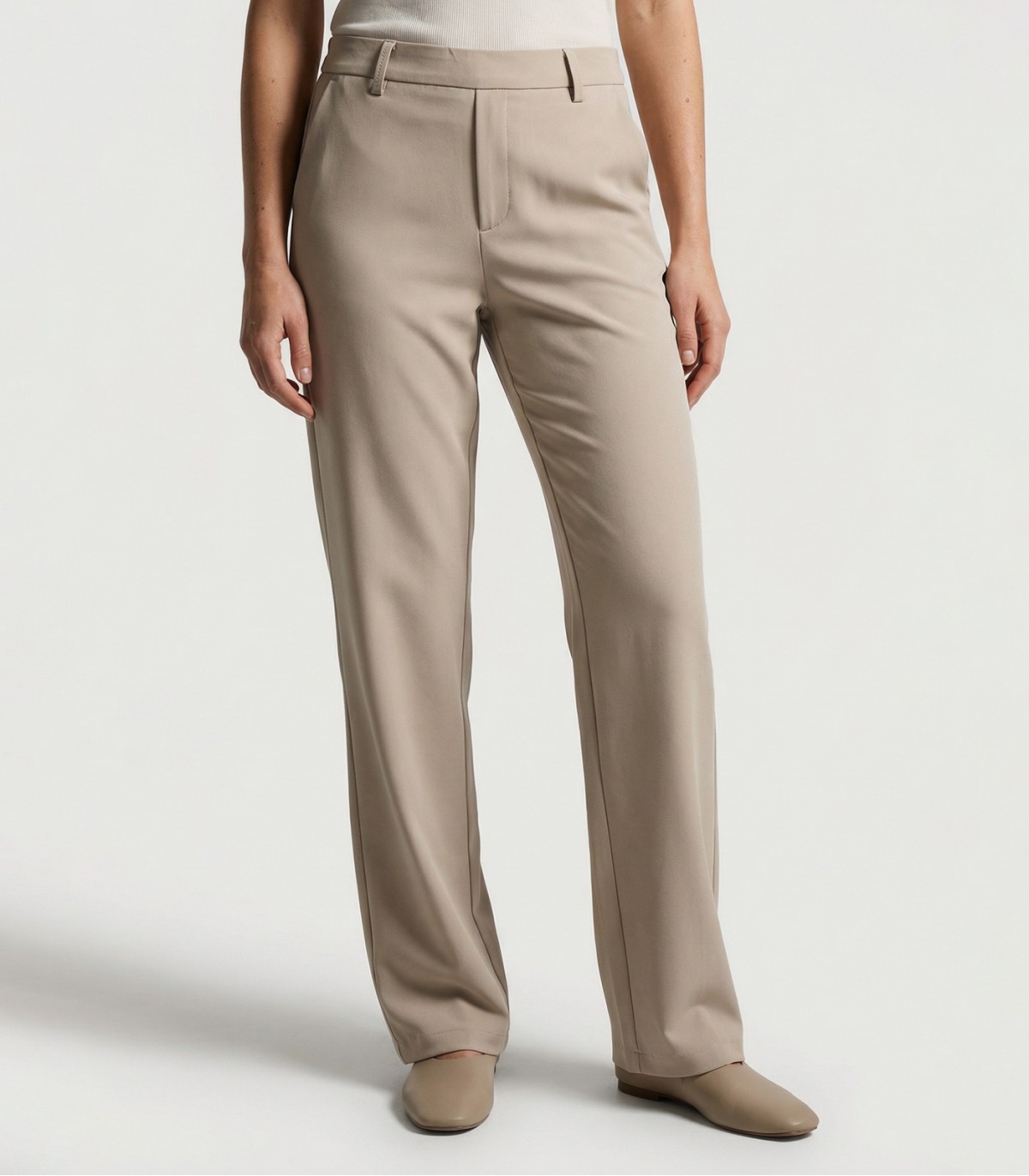 Ajatud beežid püksid sobivad nii tööpäevaks kui ka vaba aja komplektide loomiseks. Klassikaline lõige ja mugav kangas loovad elegantse välimuse, mida on lihtne sobitada erinevate ülemiste rõivastega.