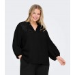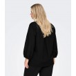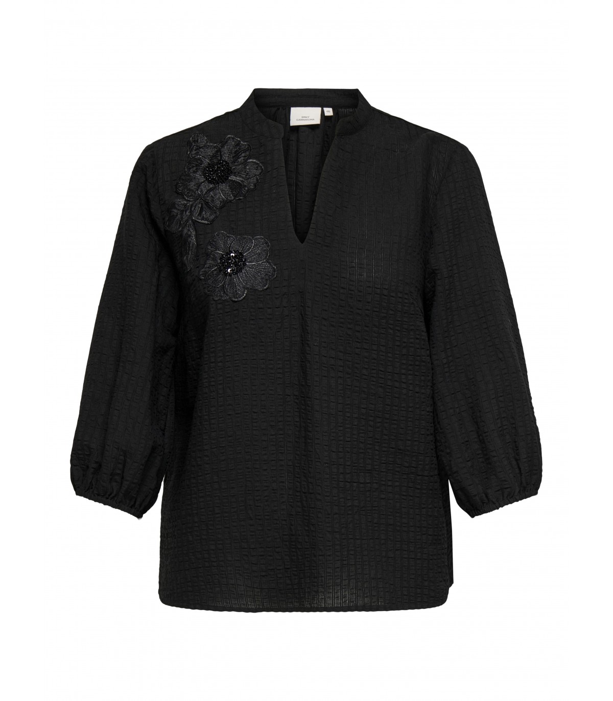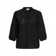 Удобная и женственная блузка из фактурной ткани с декоративной цветочной аппликацией на плече. Свободный крой и эластичные манжеты на рукавах обеспечат комфорт в течение всего дня.