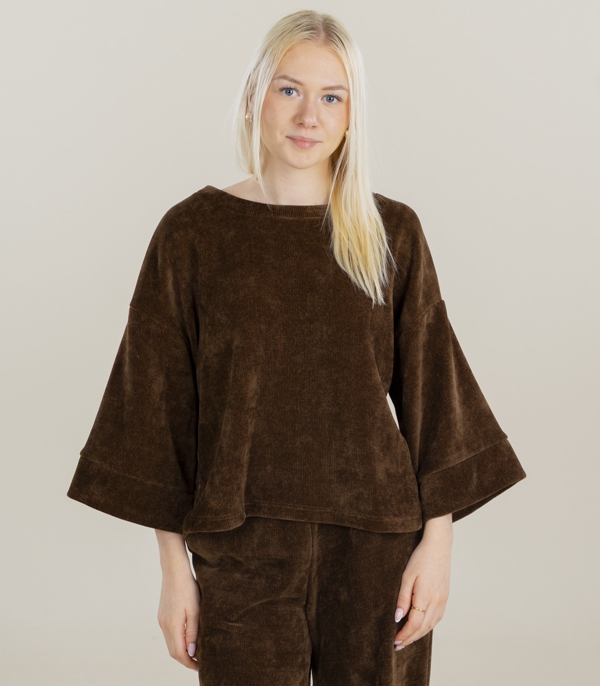 Женская вельветовая кофта Hailys создаёт уютный и современный образ. Модель свободного кроя выполнена из мягкого вельветового материала, приятного на ощупь. Широкие рукава и округлый вырез придают изделию стильную непринуждённость.