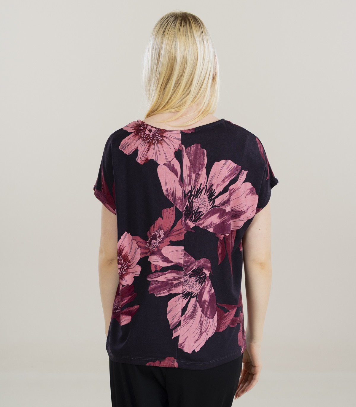 Женская футболка Zabaione выполнена из мягкой вискозы, обеспечивающей комфорт и лёгкость в носке. Принт с большими цветами по всей поверхности придаёт модели женственность и делает её ярким акцентом повседневного образа.