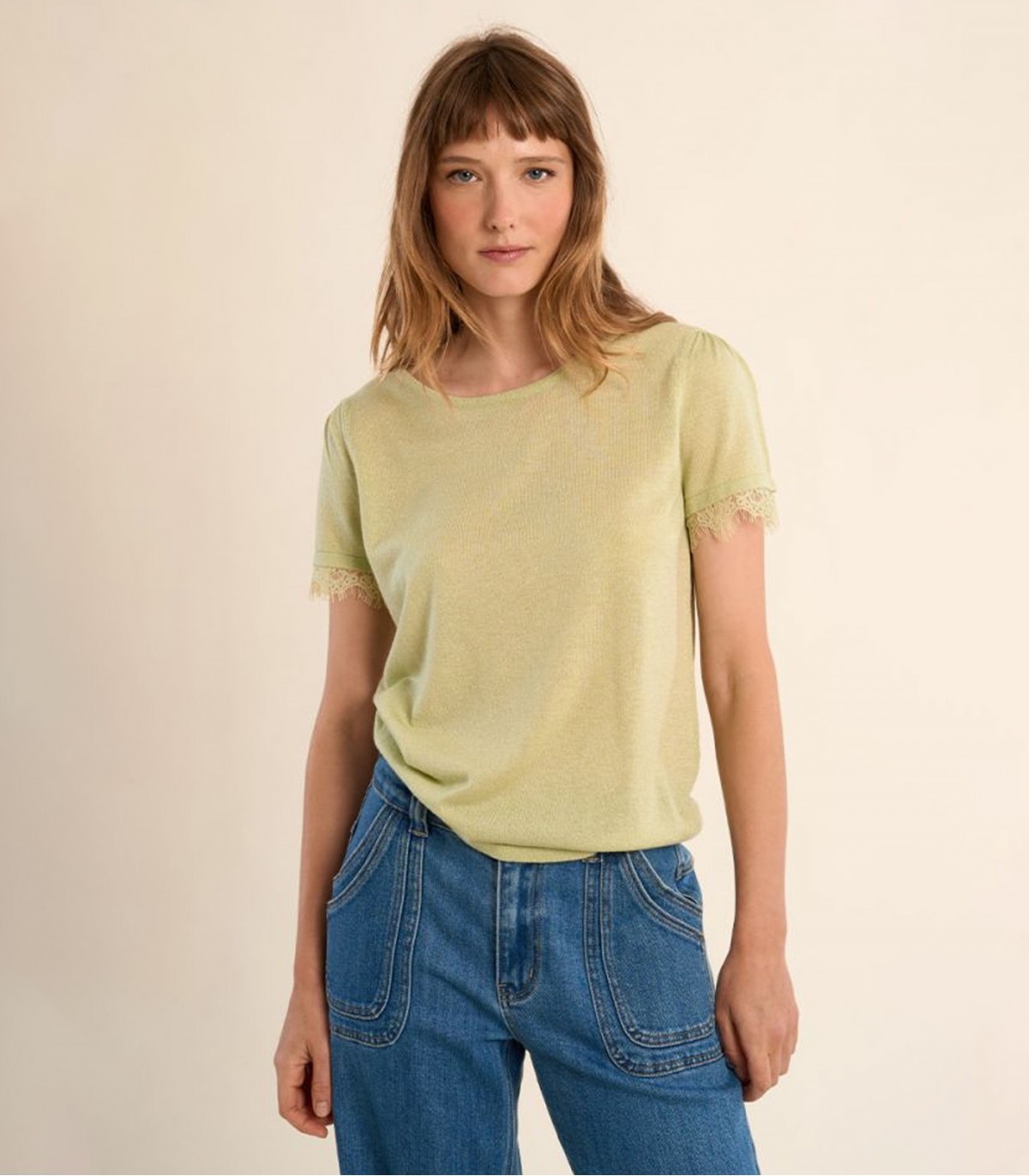 Женский тонкий джемпер-футболка Molly Bracken — лёгкий и элегантный вариант на каждый день. Короткие рукава и круглый ворот создают аккуратный силуэт, а кружевная отделка добавляет романтичности и женственности. Приталенный крой подчёркивает фигуру, а мягкая и дышащая ткань обеспечивает комфорт в течение всего дня.