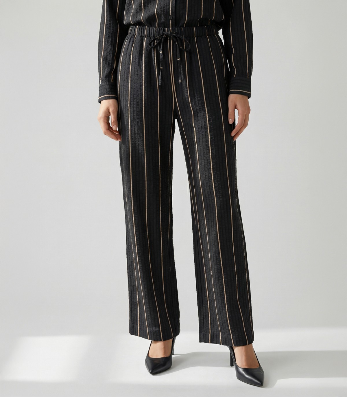 Женские брюки — комфортная и стильная модель в расслабленном стиле, идеально подходящая для повседневных образов. Свободный крой с широкими штанинами обеспечивает удобство движений, а шнурок на поясе позволяет легко регулировать посадку. Боковые карманы добавляют практичности и функциональности.