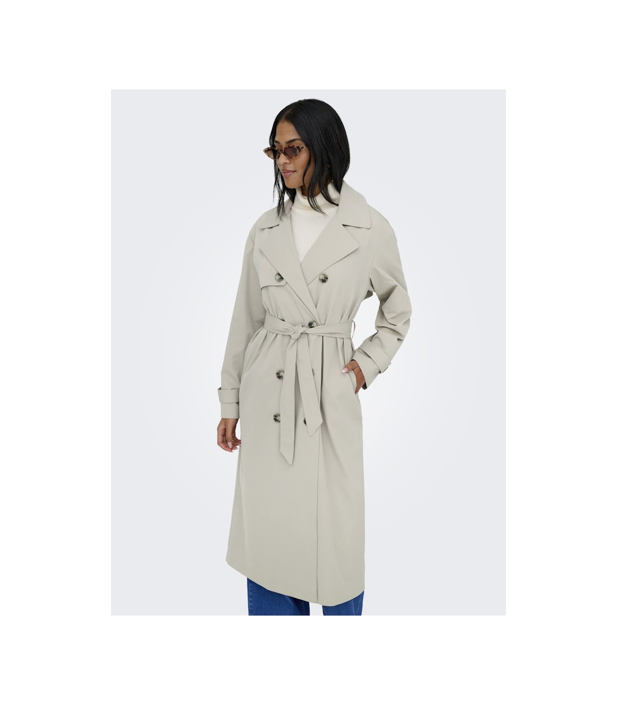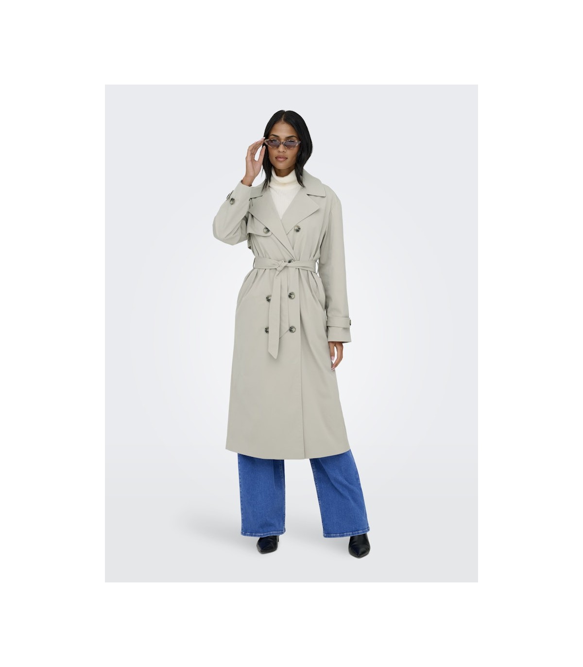 Only длинный плащ классического кроя с современными деталями. Плащ имеет регулируемую талию со съемным поясом, а рукава с манжетами на пуговицах добавляют стиля. Удобный прямой крой и глубокие карманы делают его практичным выбором для повседневной носки.