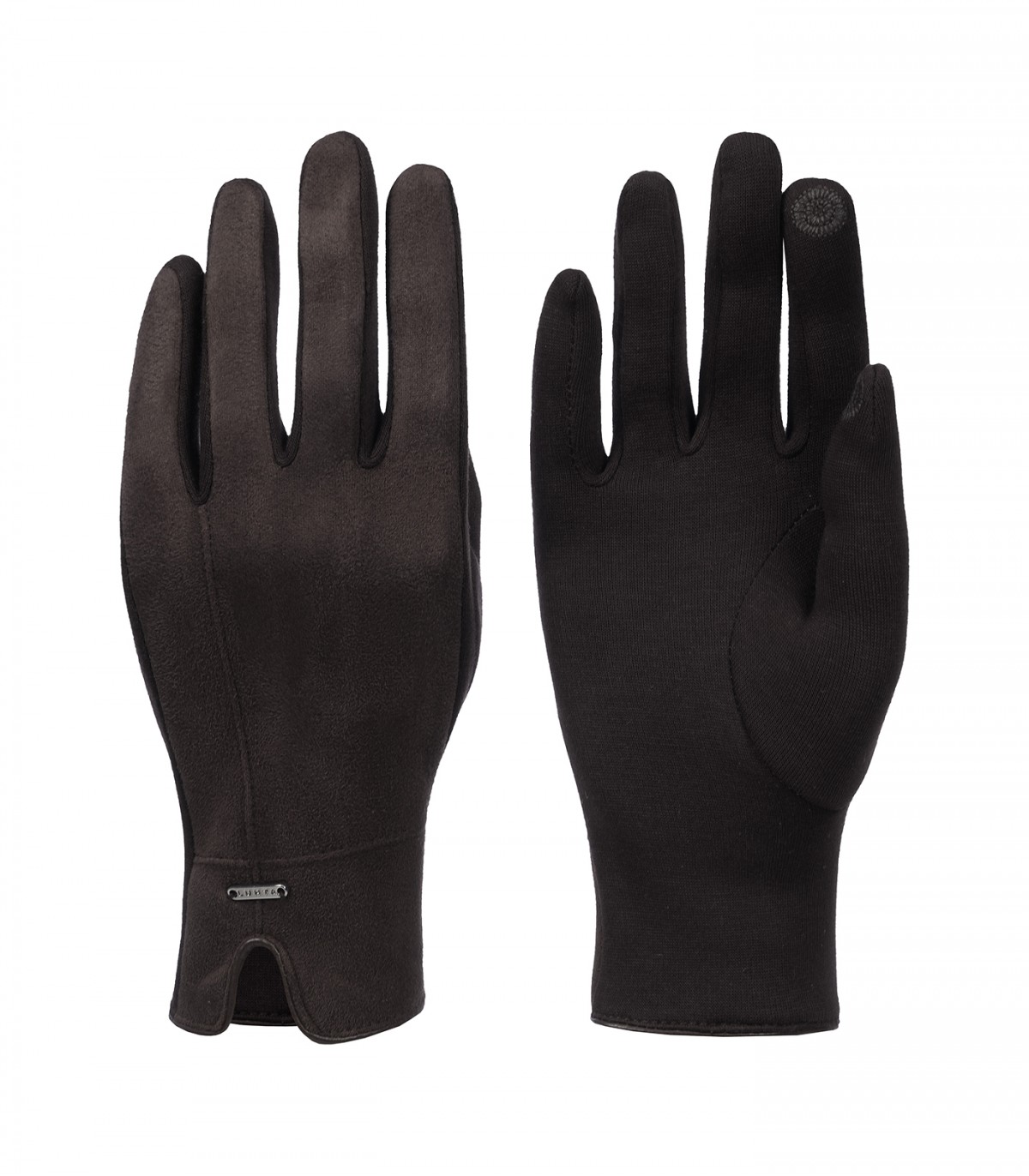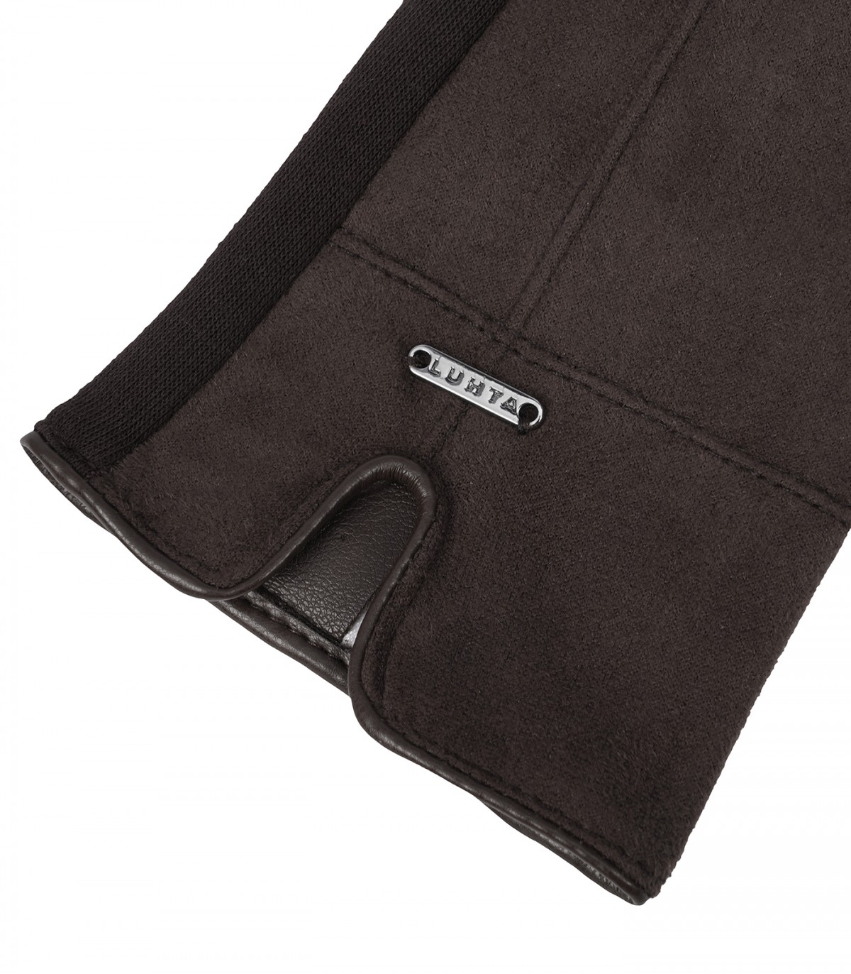 Женские перчатки Luhta с металлическим логотипом и кантом по краю.