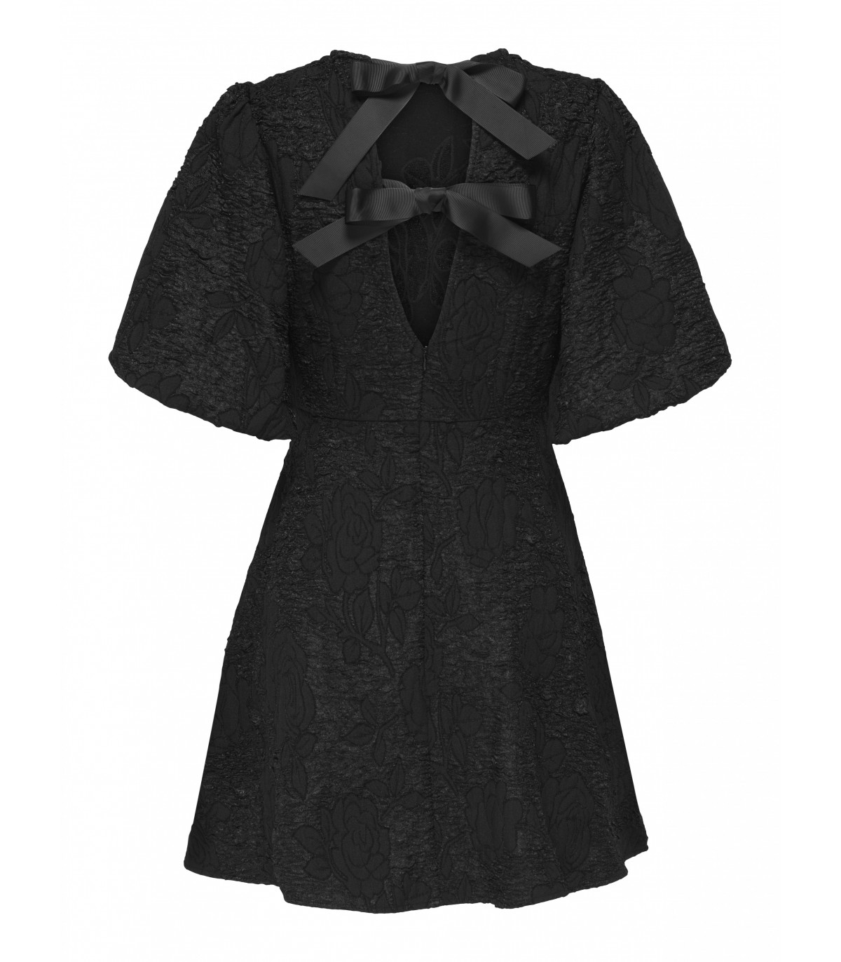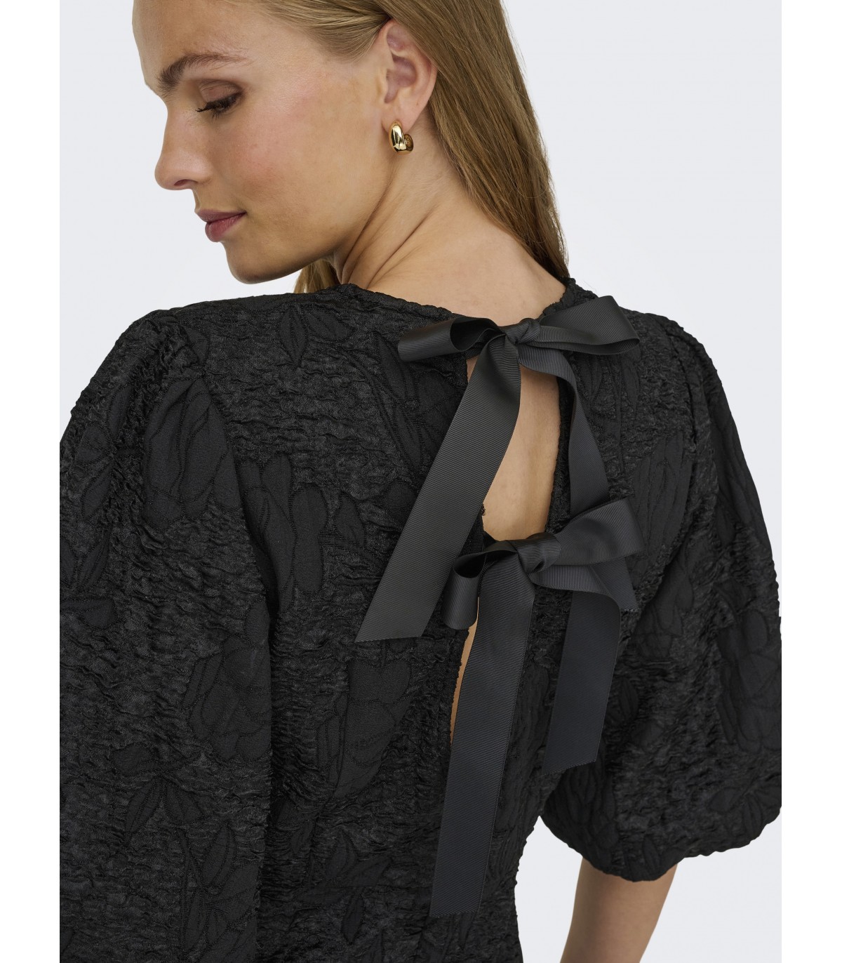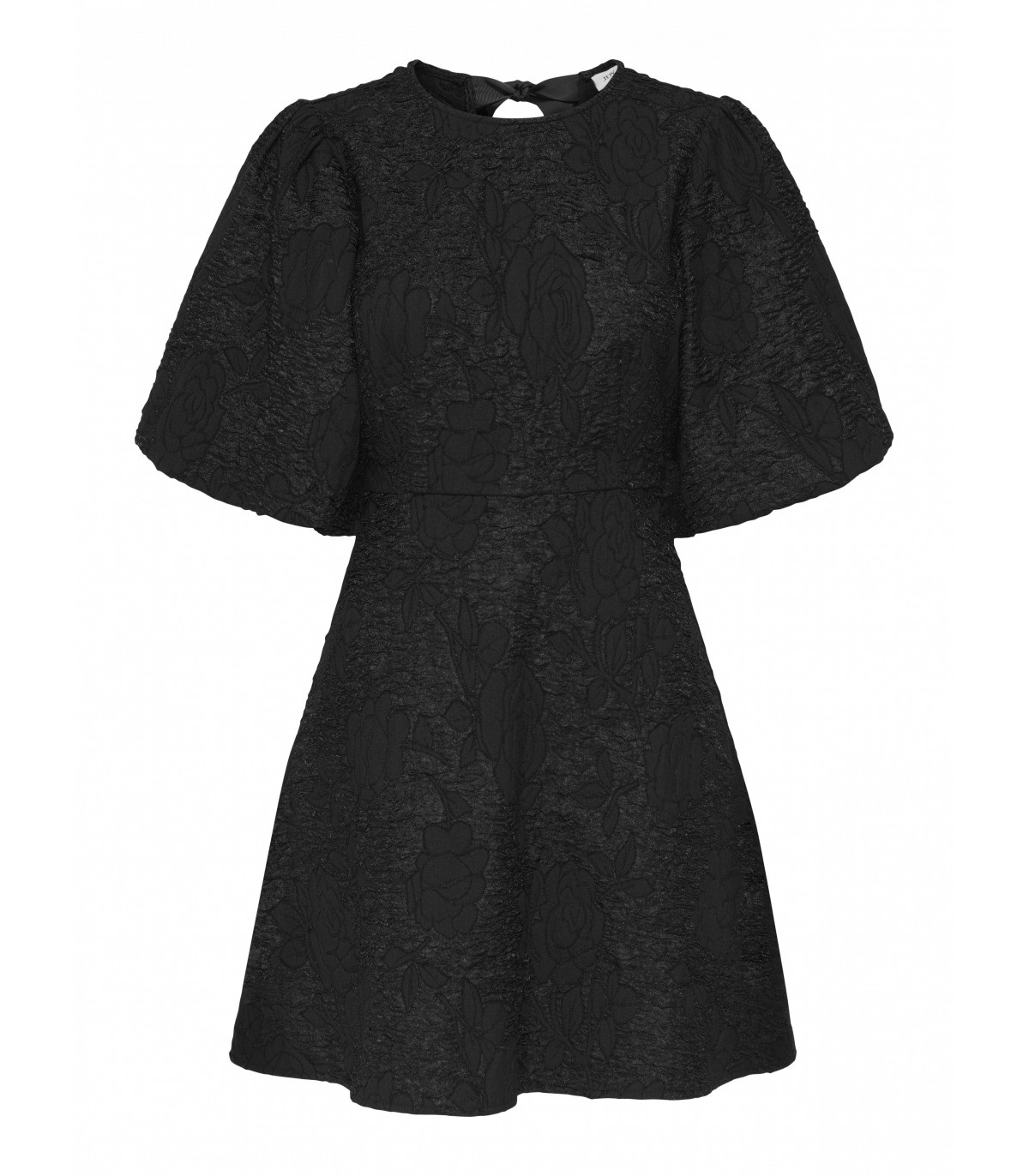 Элегантное праздничное платье JDY выполнено из жаккардовой ткани, которая придаёт образу изысканную текстуру и лёгкий блеск. Модель с круглой горловиной и короткими рукавами-баллонами создаёт романтичный и женственный силуэт. Длина до колена и обычная посадка обеспечивают комфорт и свободу движений, а декоративные банты на спине добавляют изящный акцент. Идеальный выбор для торжественных случаев и праздничных мероприятий.